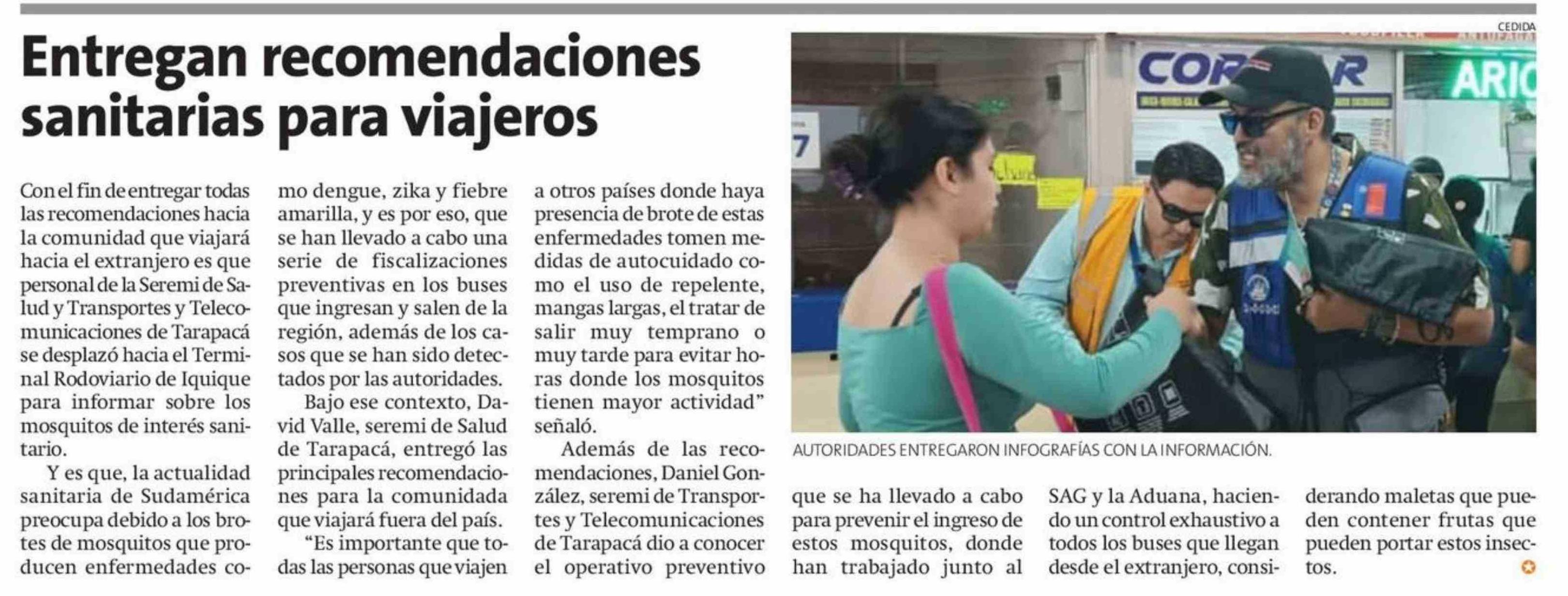 Entregan recomendaciones sanitarias para viajeros 17-01-2026 La Estrella de Iquique |