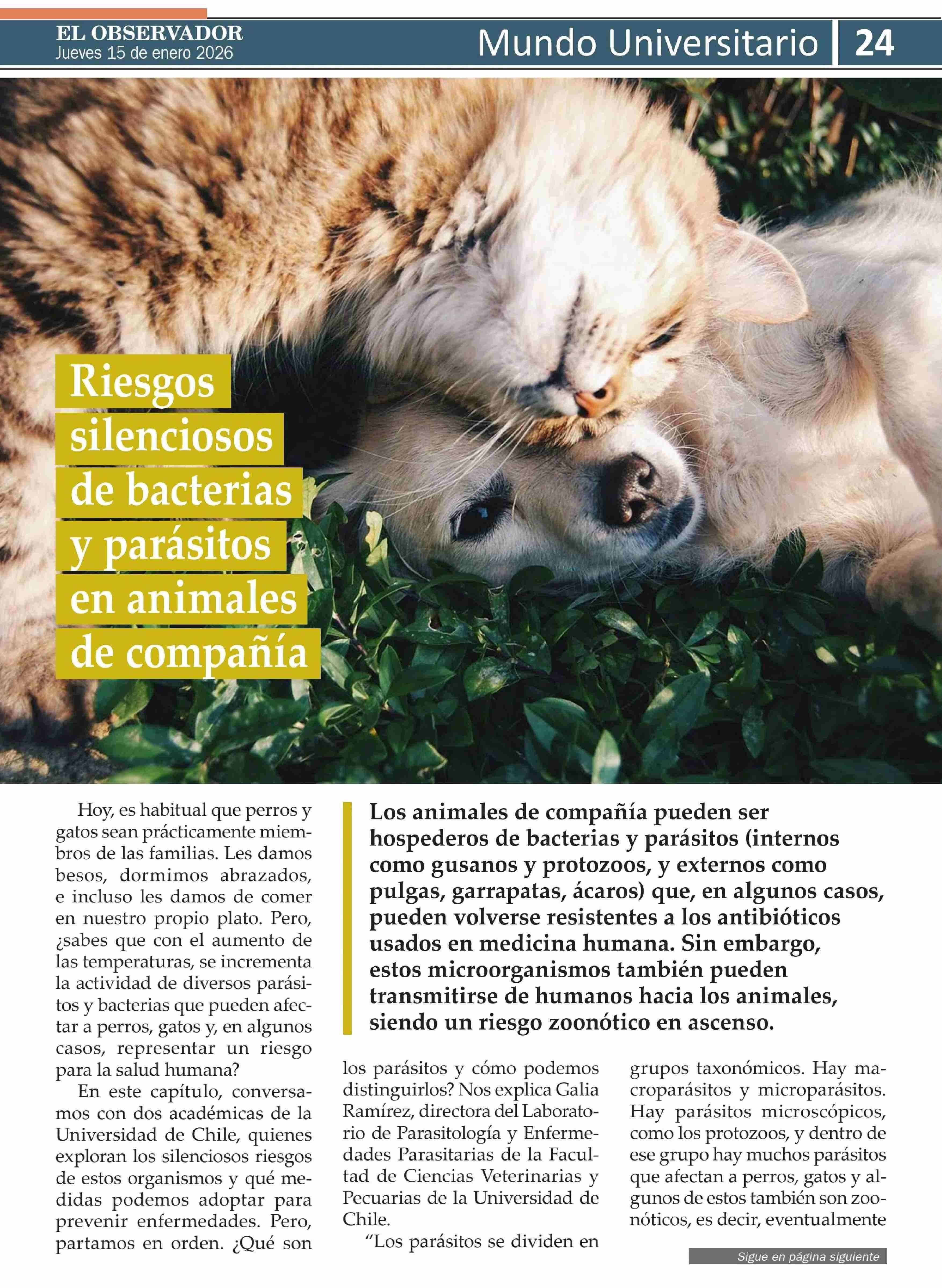 RIESGOS SILENCIOSOS DE BACTERIAS Y PARÁSITOS EN ANIMALES DE COMPAÑÍA 15-01-2026 El Observador Vespertino |