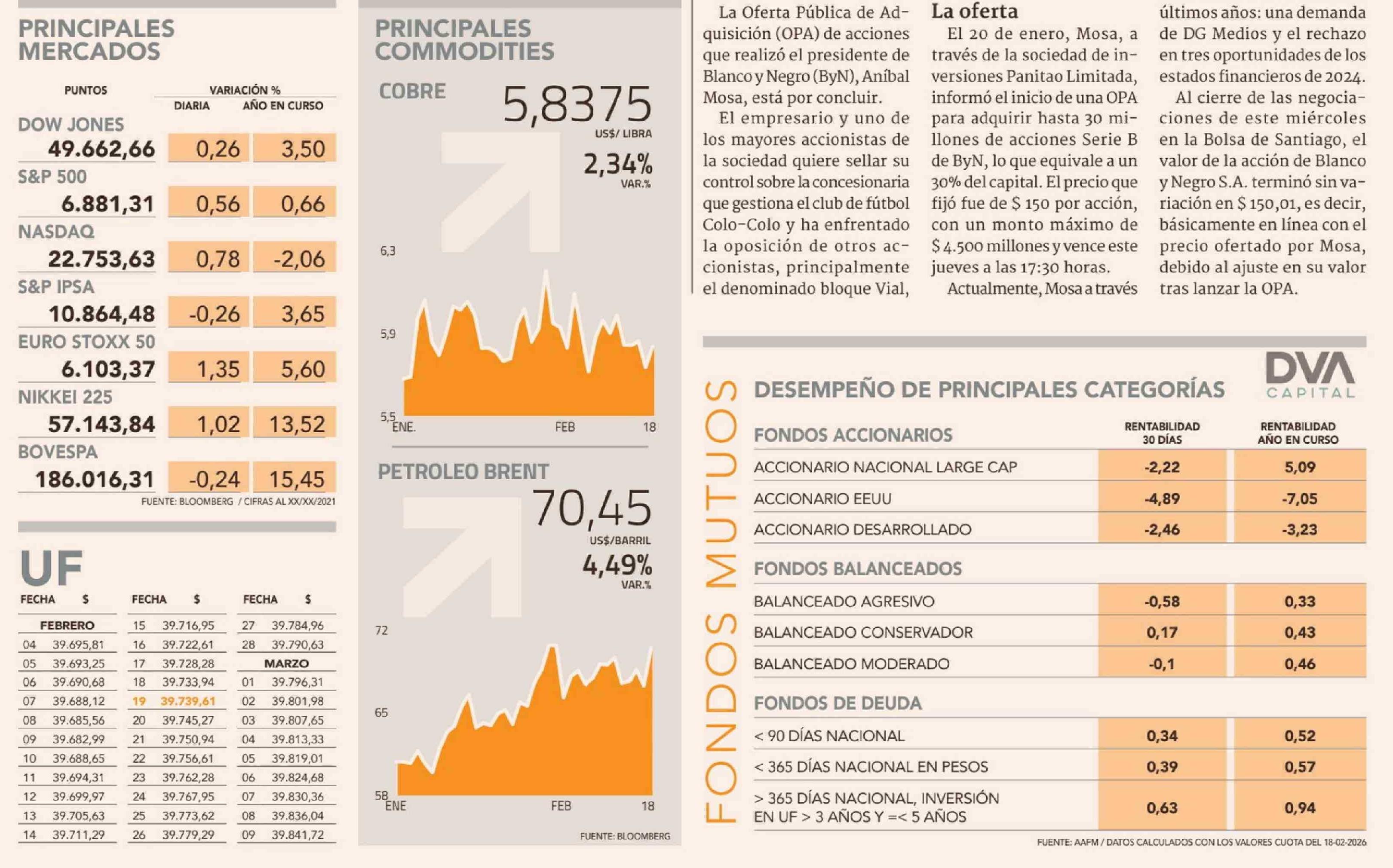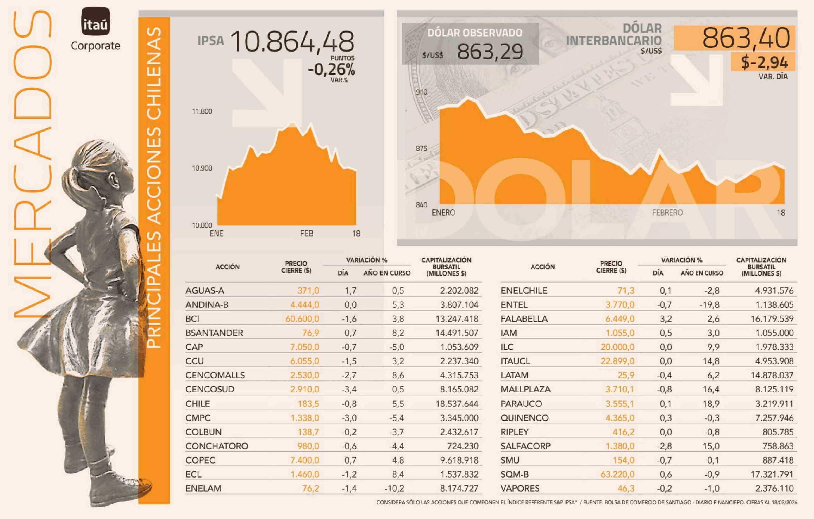 Indicadores Económicos: MERCADOS 19-02-2026 Diario Financiero |