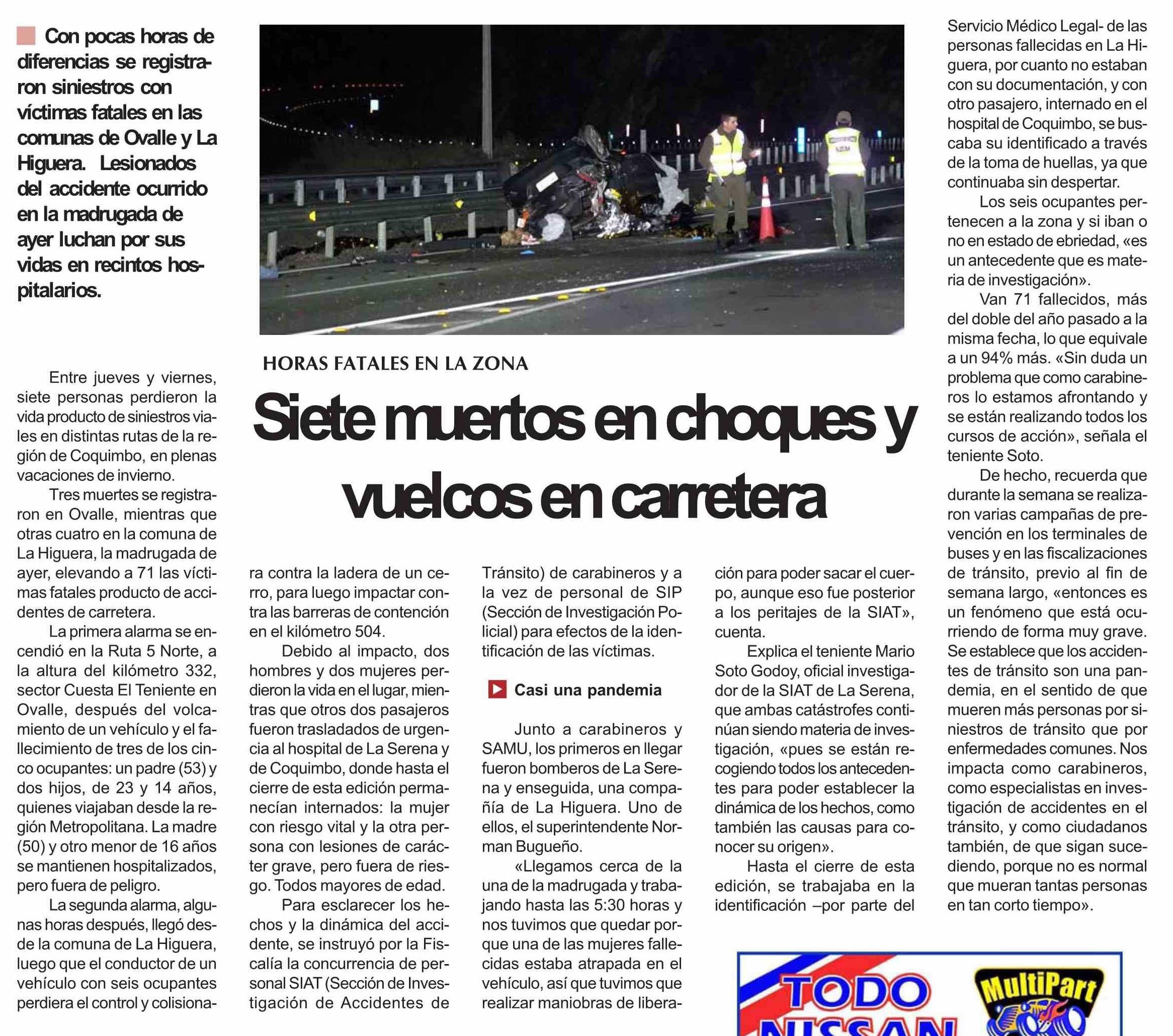 | Título: | Siete muertos en choques y vuelcos en carretera |