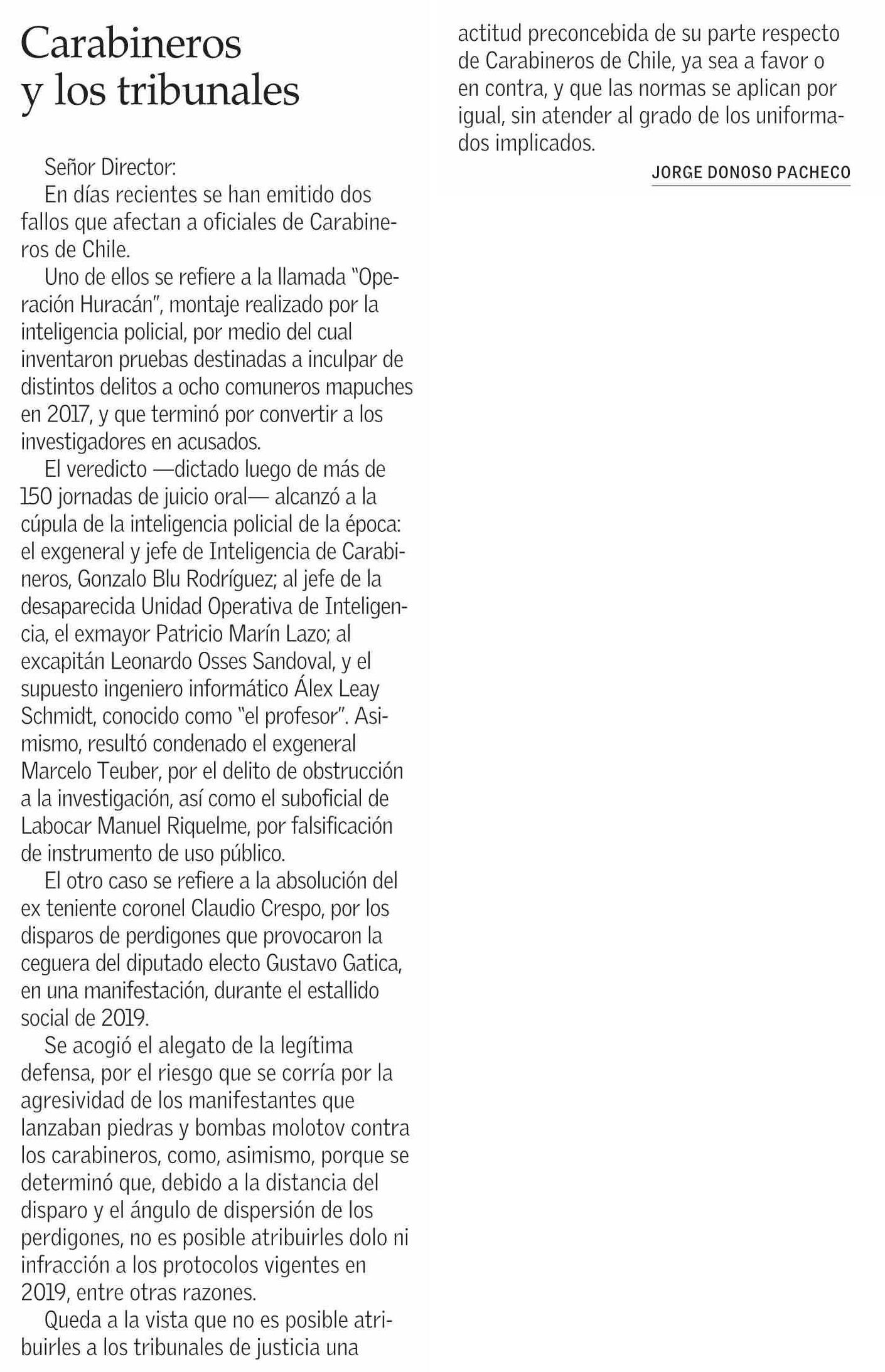 Cartas: Carabineros y los tribunales 14-01-2026 El Mercurio |