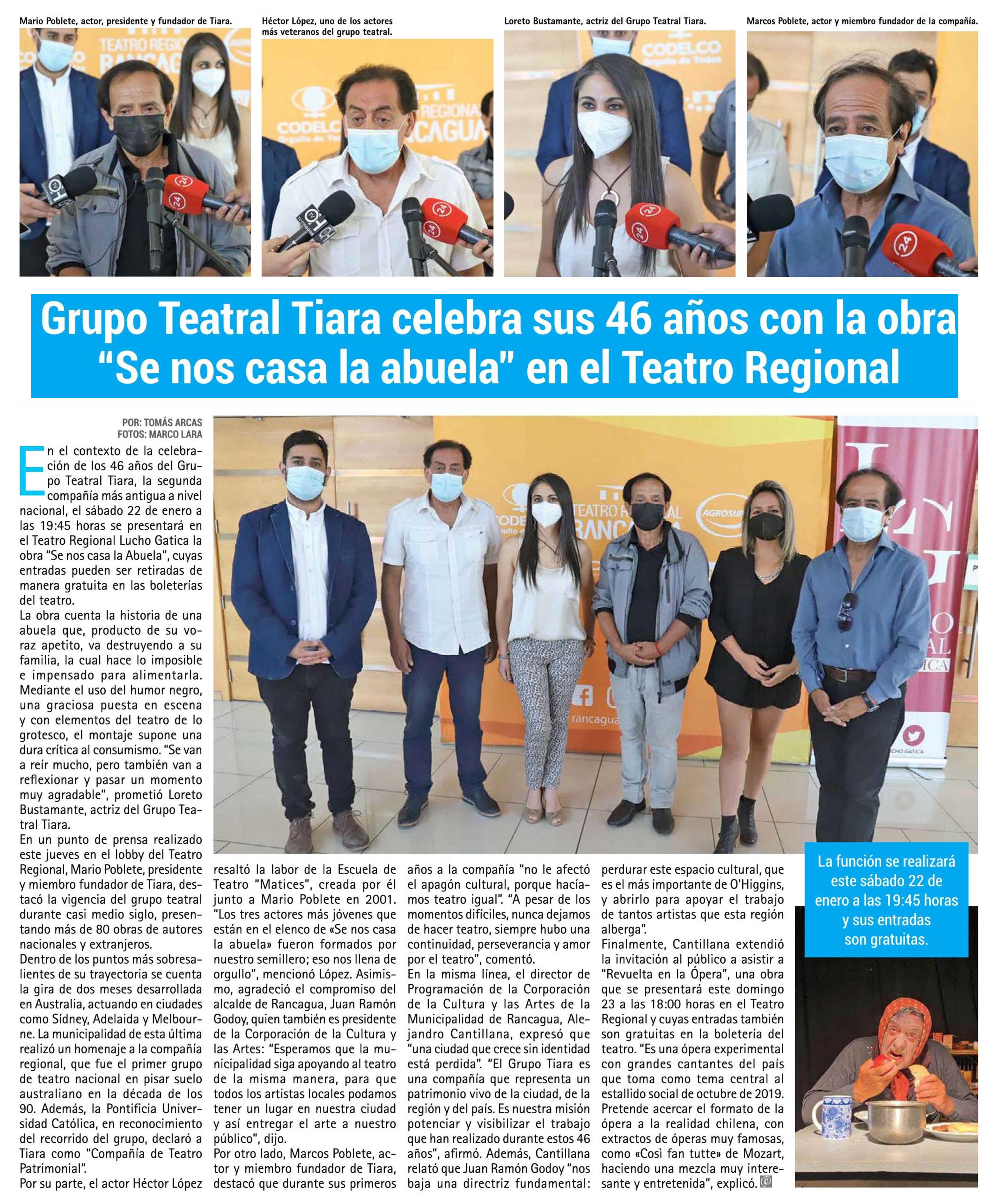 Grupo Teatral Tiara celebra sus 46 años con la obra "Se nos casa la abuela" en el Teatro Regional 21-01-2022 El Rancagüino |