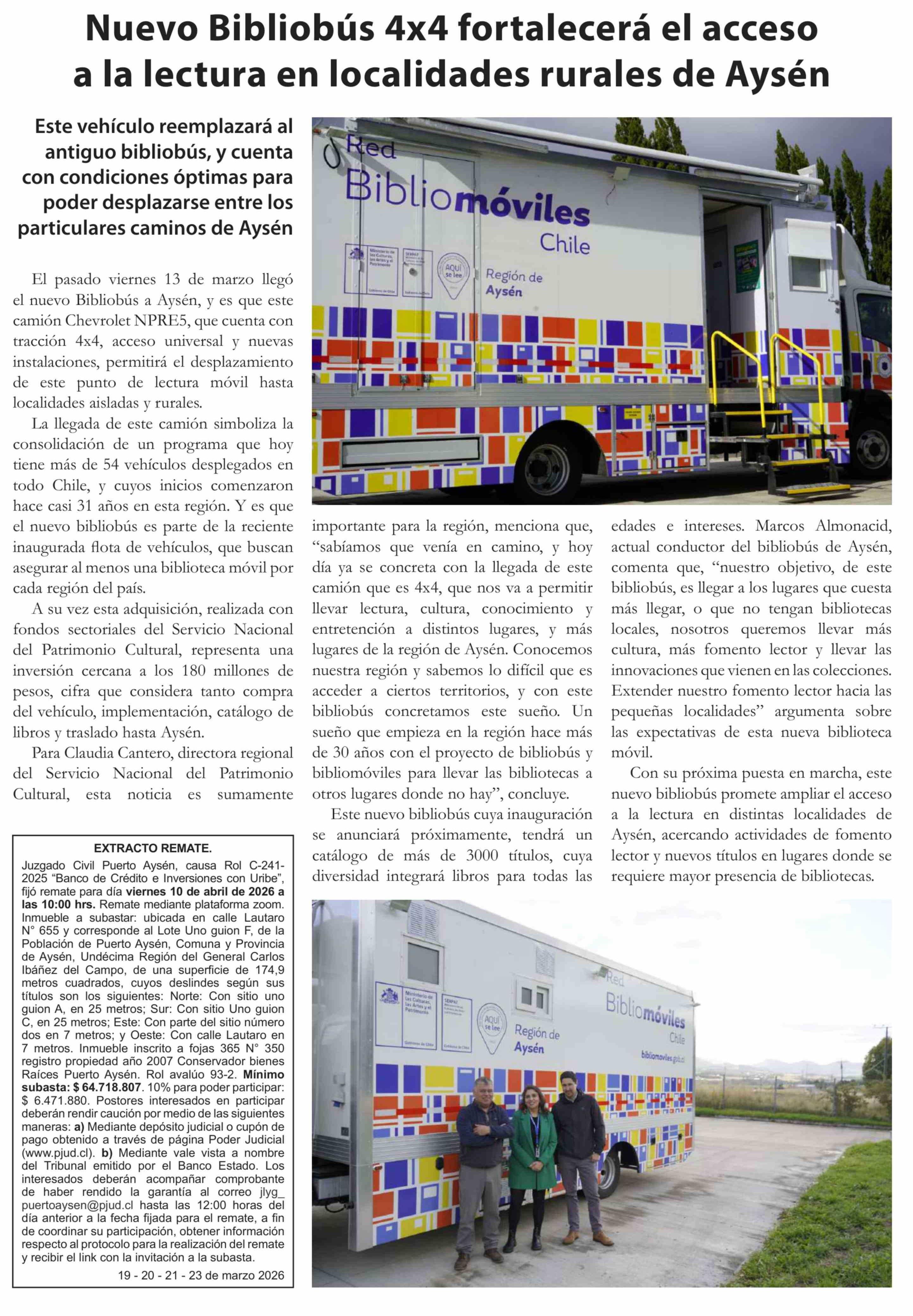 | Título: | Nuevo Bibliobús 4x4 fortalecerá el acceso a la lectura en localidades rurales de Aysén |