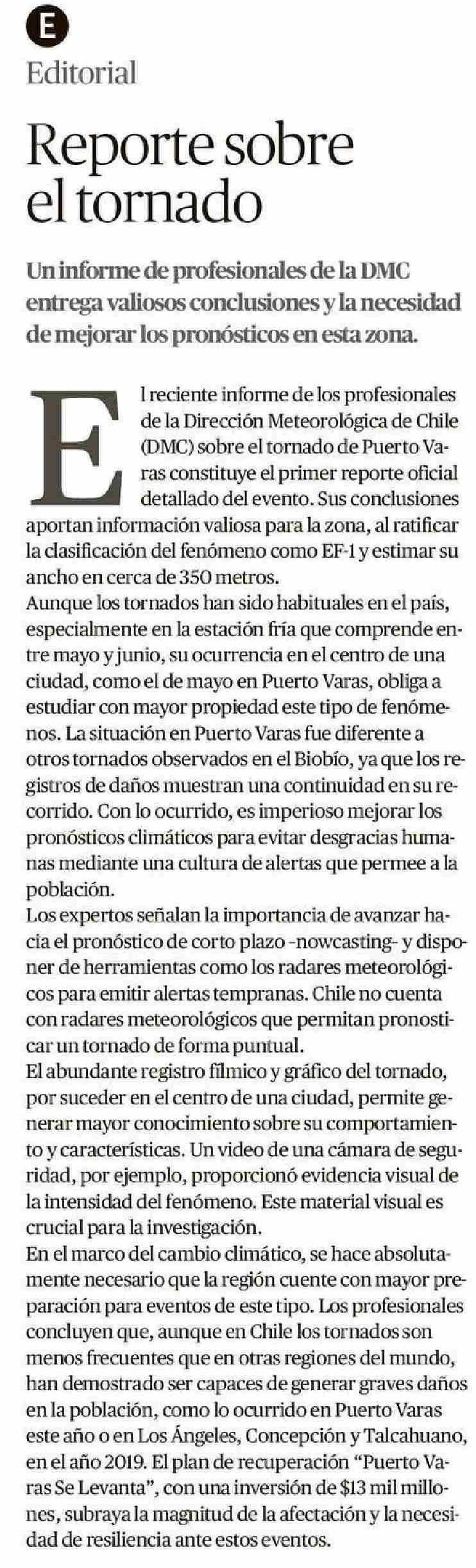 EDITORIAL: Reporte sobre el tornado 22-06-2025 El Austral de Osorno |