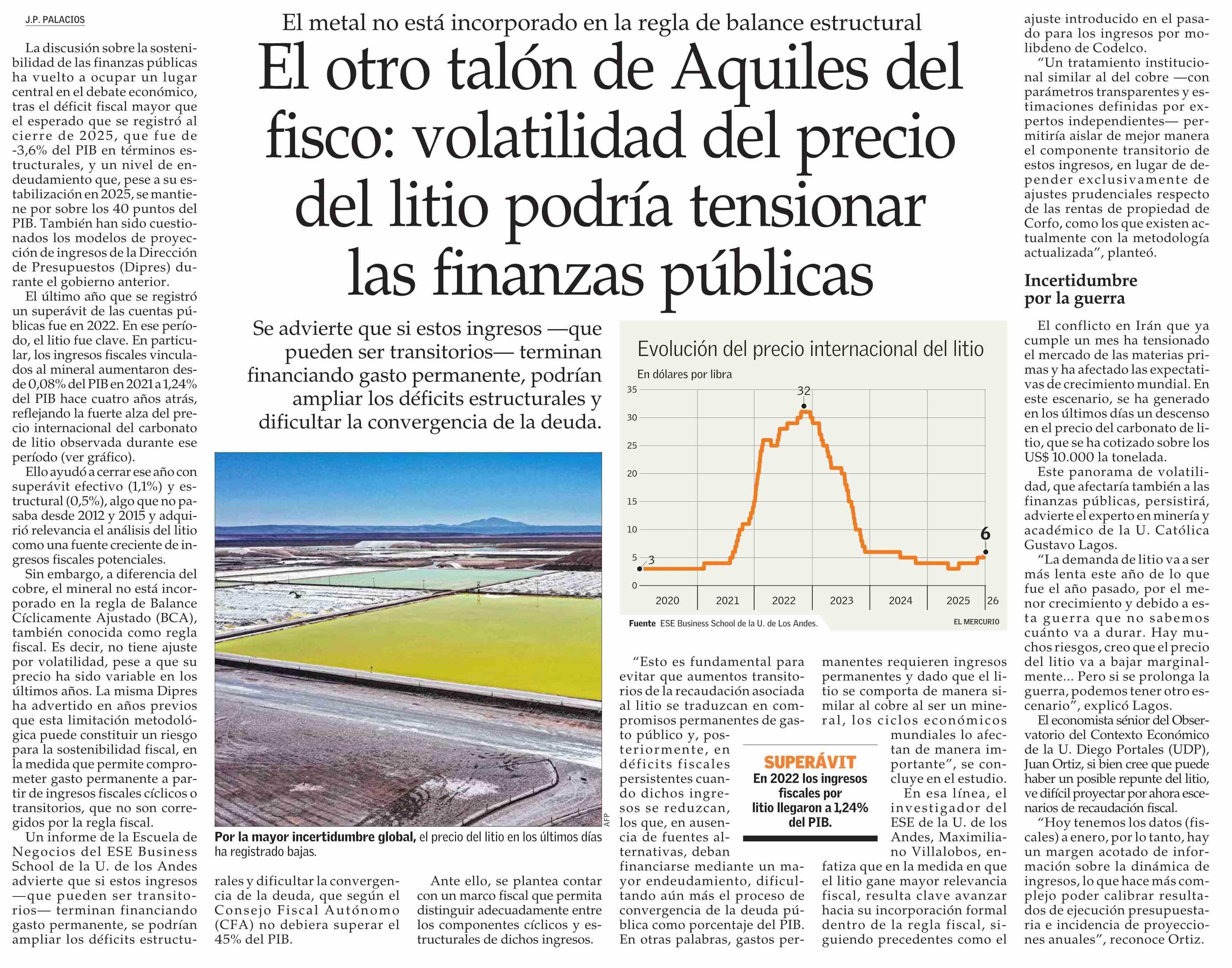 Título: El otro talón de Aquiles del fisco: volatilidad del precio del litio podría tensionar las finanzas públicas