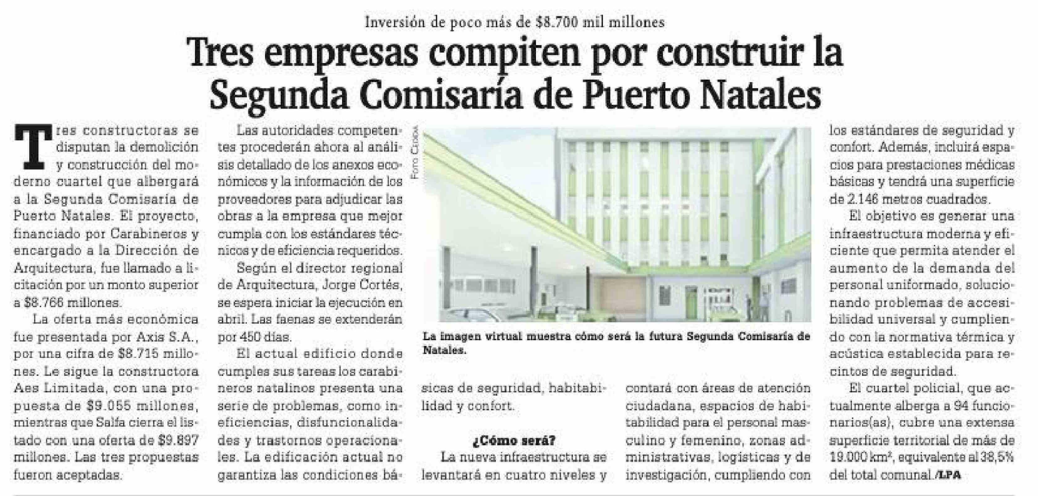 Título: Tres empresas compiten por construir la Segunda Comisaría de Puerto Natales