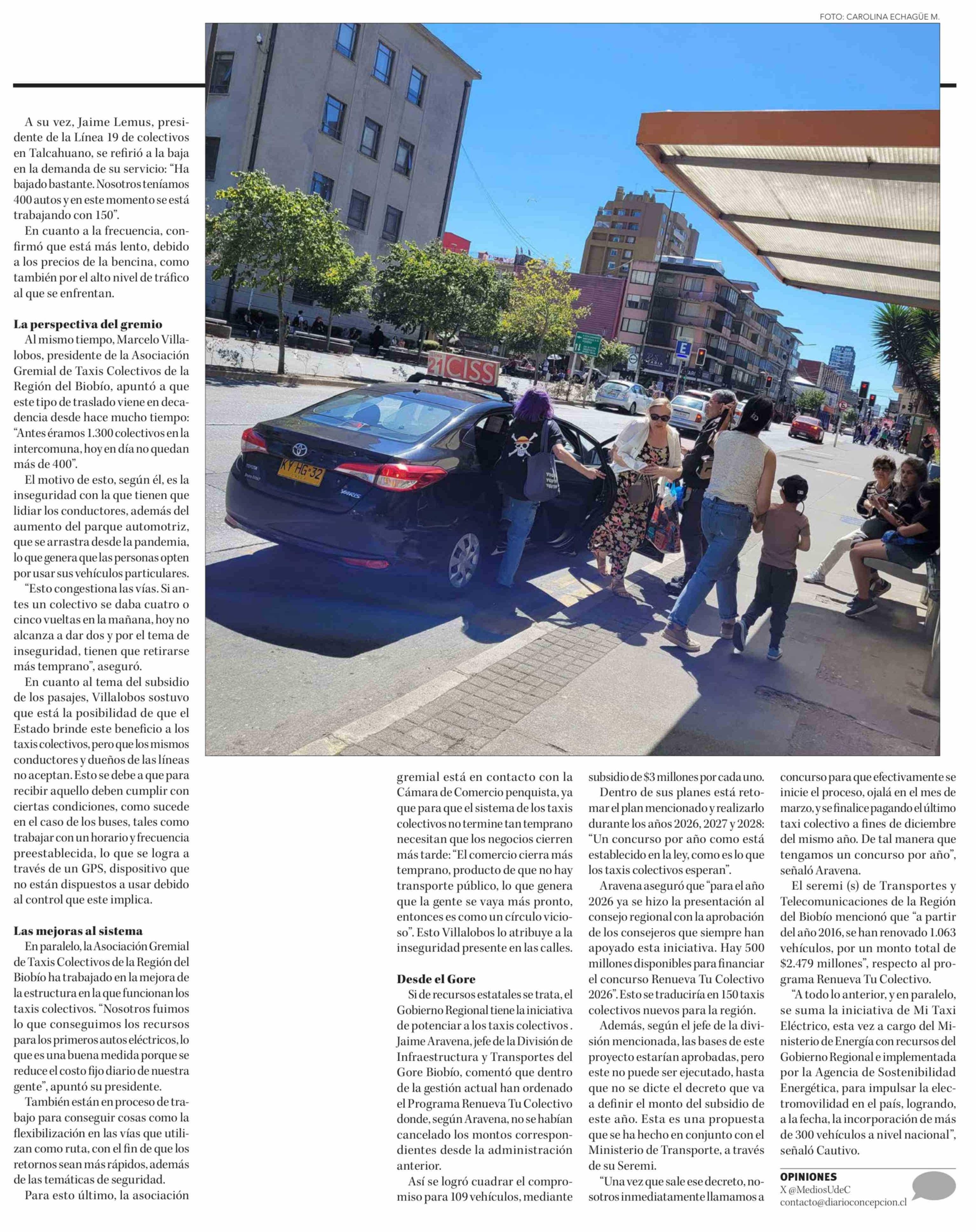 Taxis colectivos: sector registra baja de vehículos desde 2020 en el Biobío 15-02-2026 Diario Concepción |