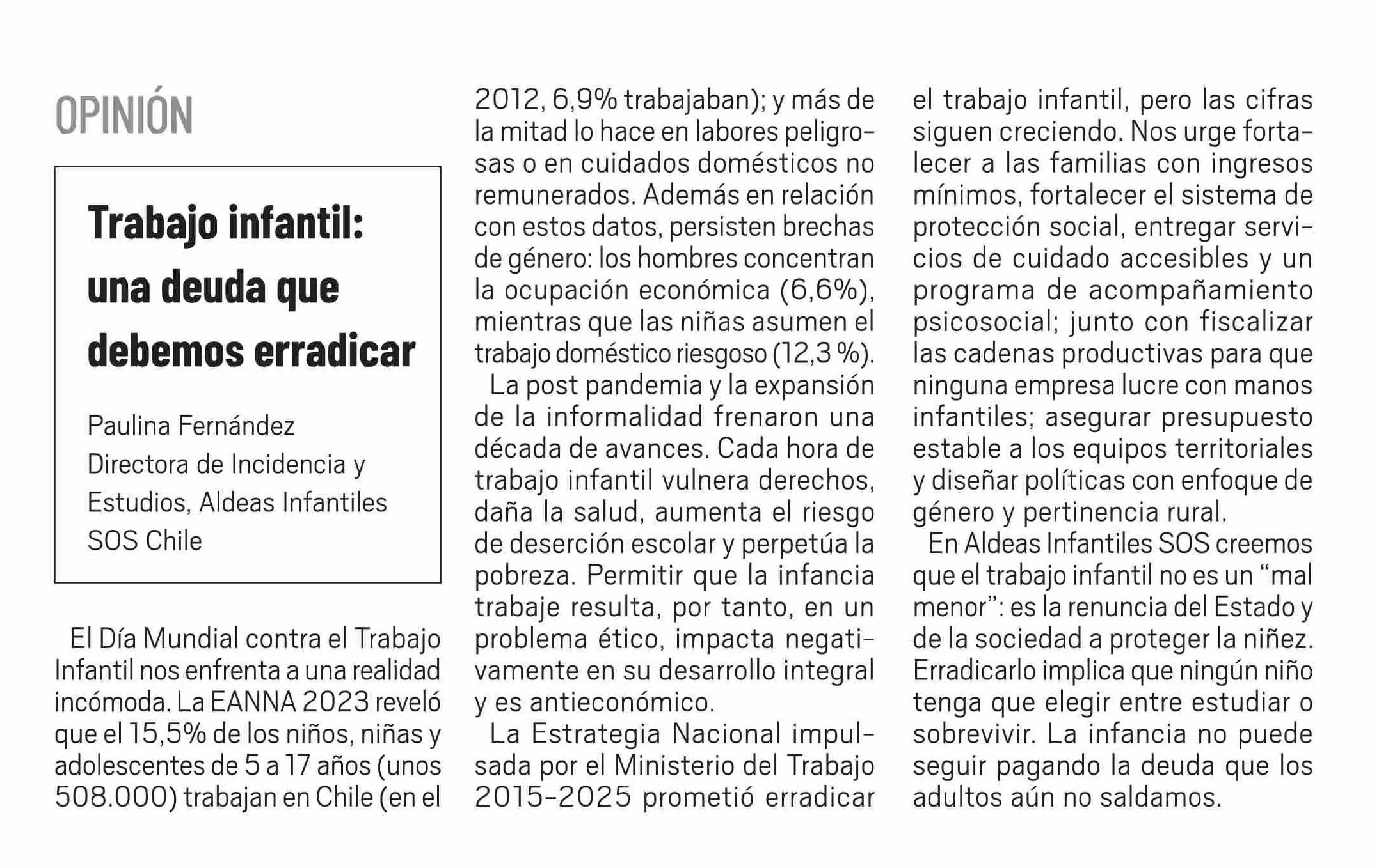 COLUMNAS DE OPINIÓN: una deuda que debemos erradicar 12-06-2025 El Día |