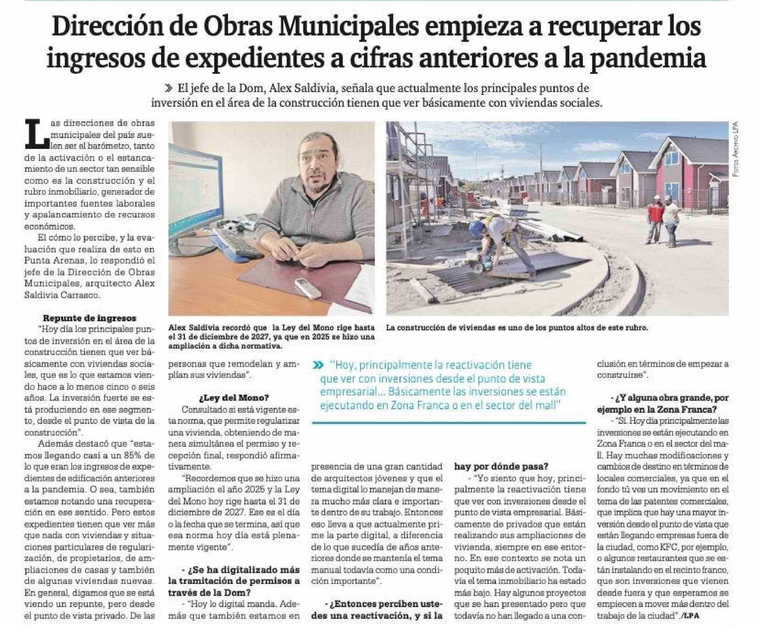 Dirección de Obras Municipales empieza a recuperar los ingresos de expedientes a cifras anteriores a la pandemia 09-02-2026 La Prensa Austral |