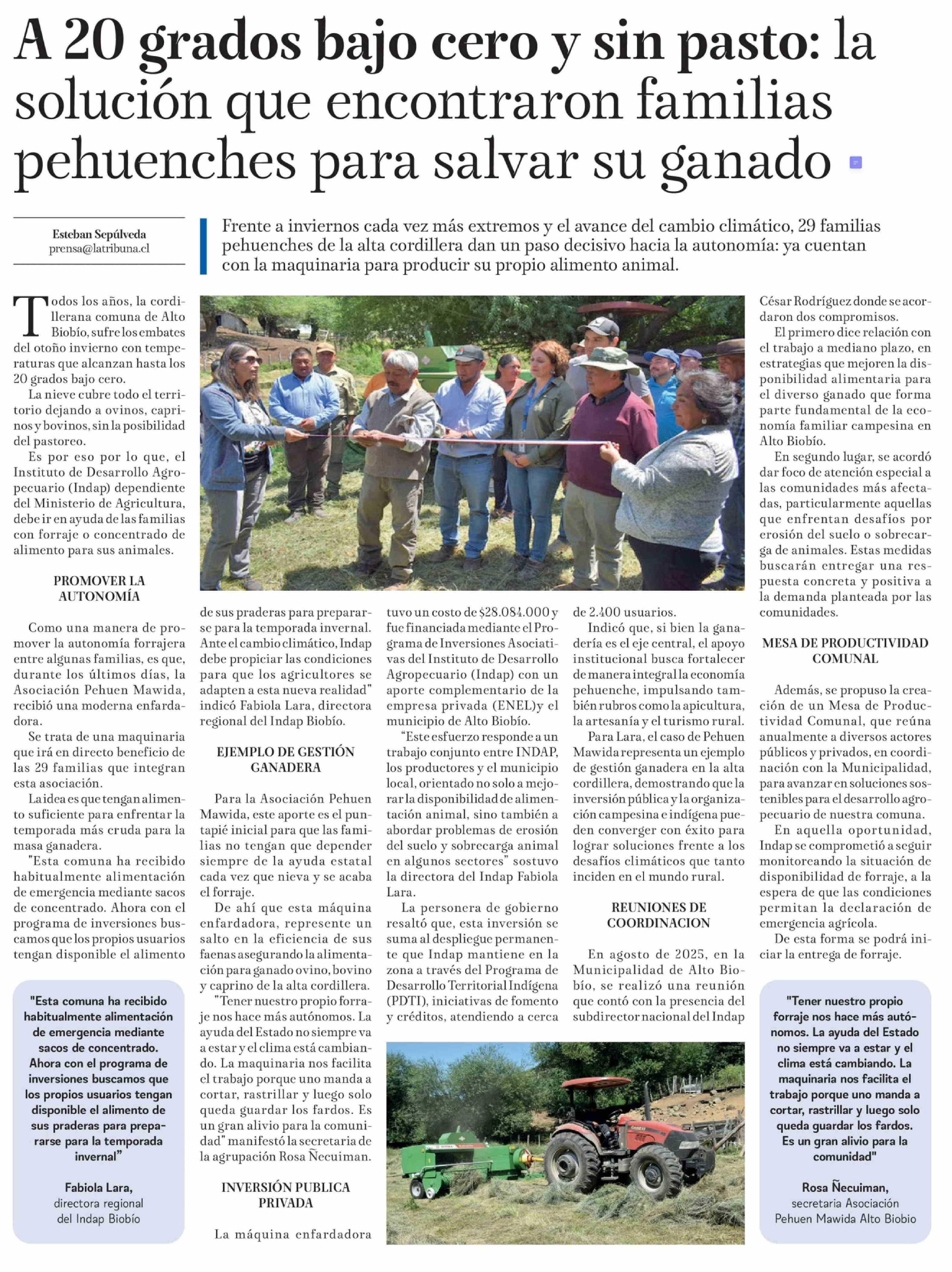 A 20 grados bajo cero y sin pasto: la solución que encontraron familias pehuenches para salvar su ganado 03-03-2026 La Tribuna |