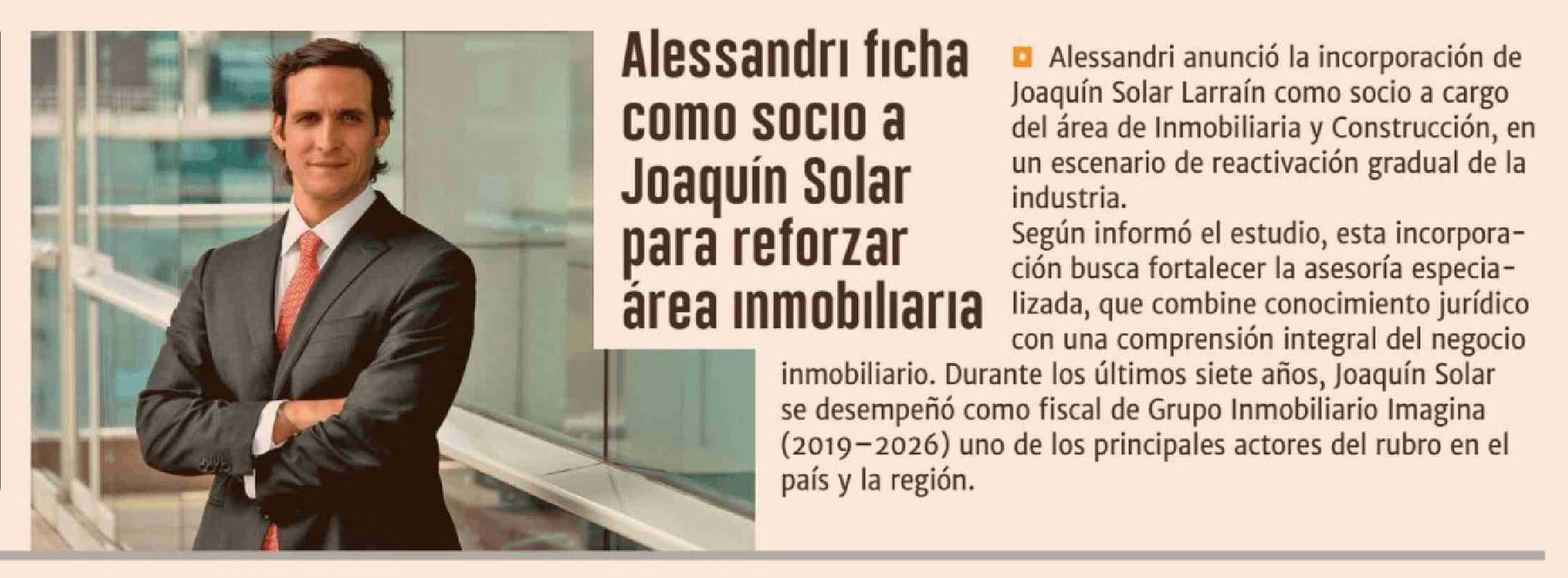Título: Alessandri ficha como socio a Joaquín Solar para reforzar área inmobiliaria
