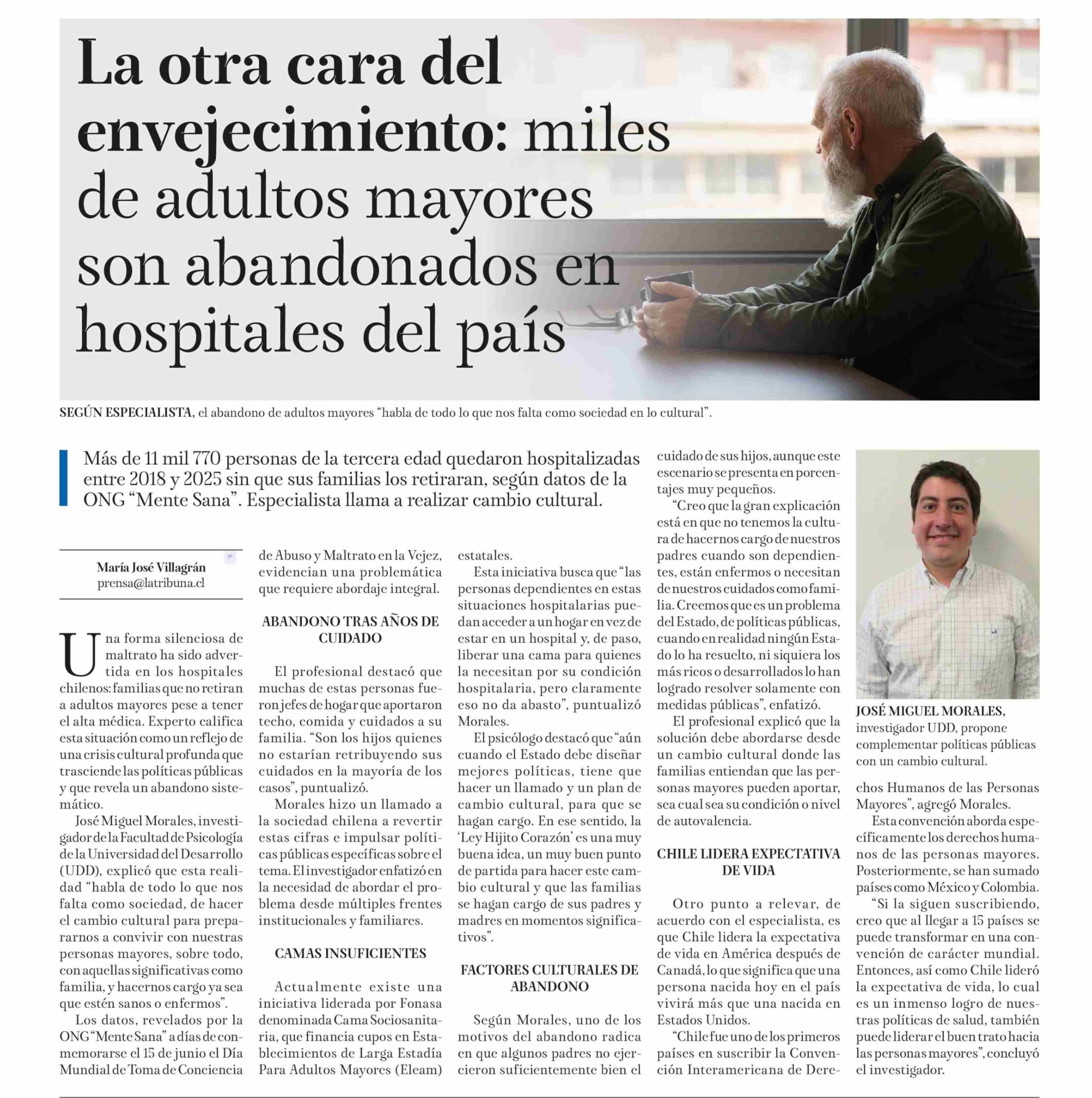 La otra cara del envejecimiento: miles de adultos mayores son abandonados en hospitales del país 13-06-2025 La Tribuna |