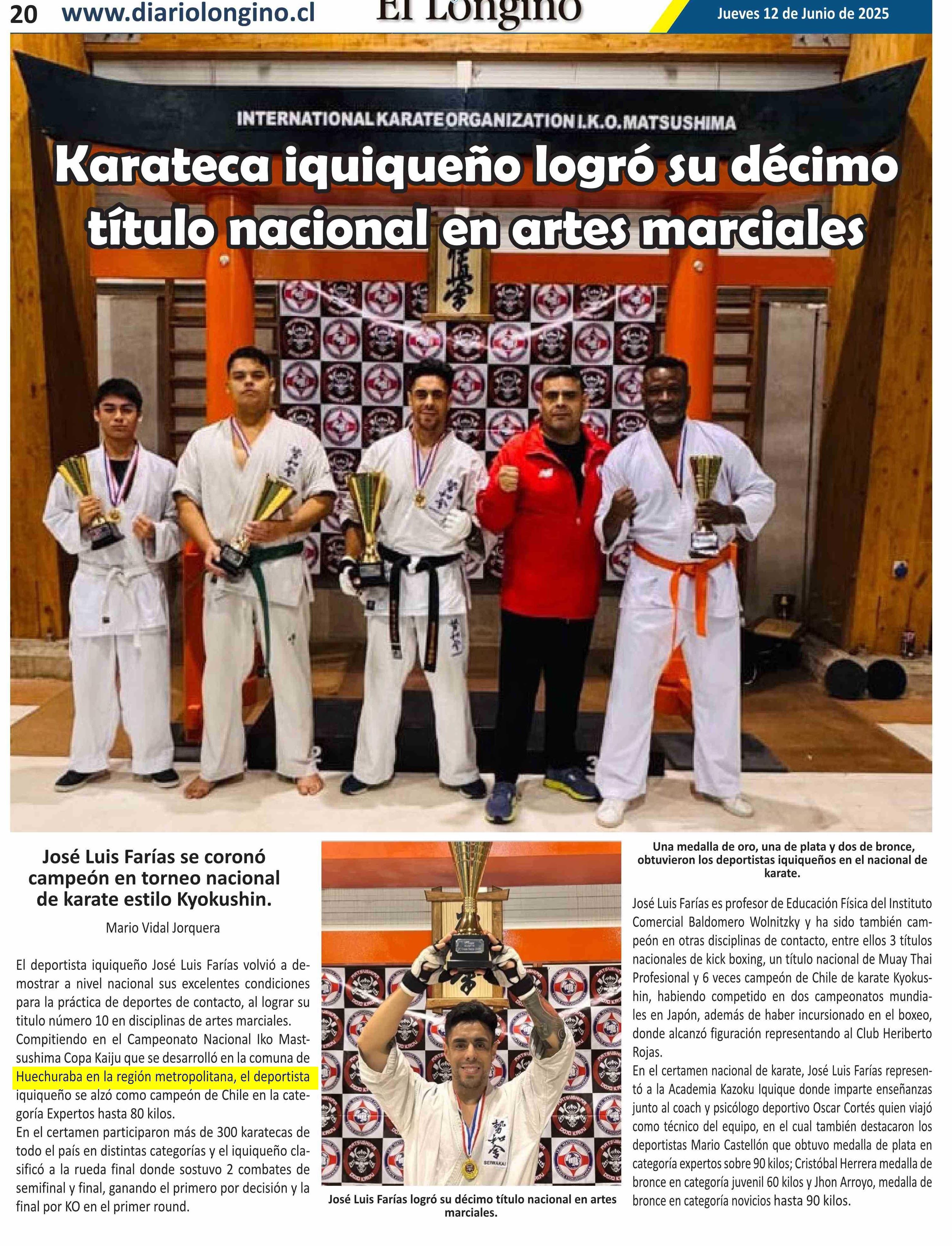Karateca iquiqueño logró su décimo Karateca iquiqueño logró su décimo título nacional en artes marciales título nacional en artes marciales 12-06-2025 El Longino |