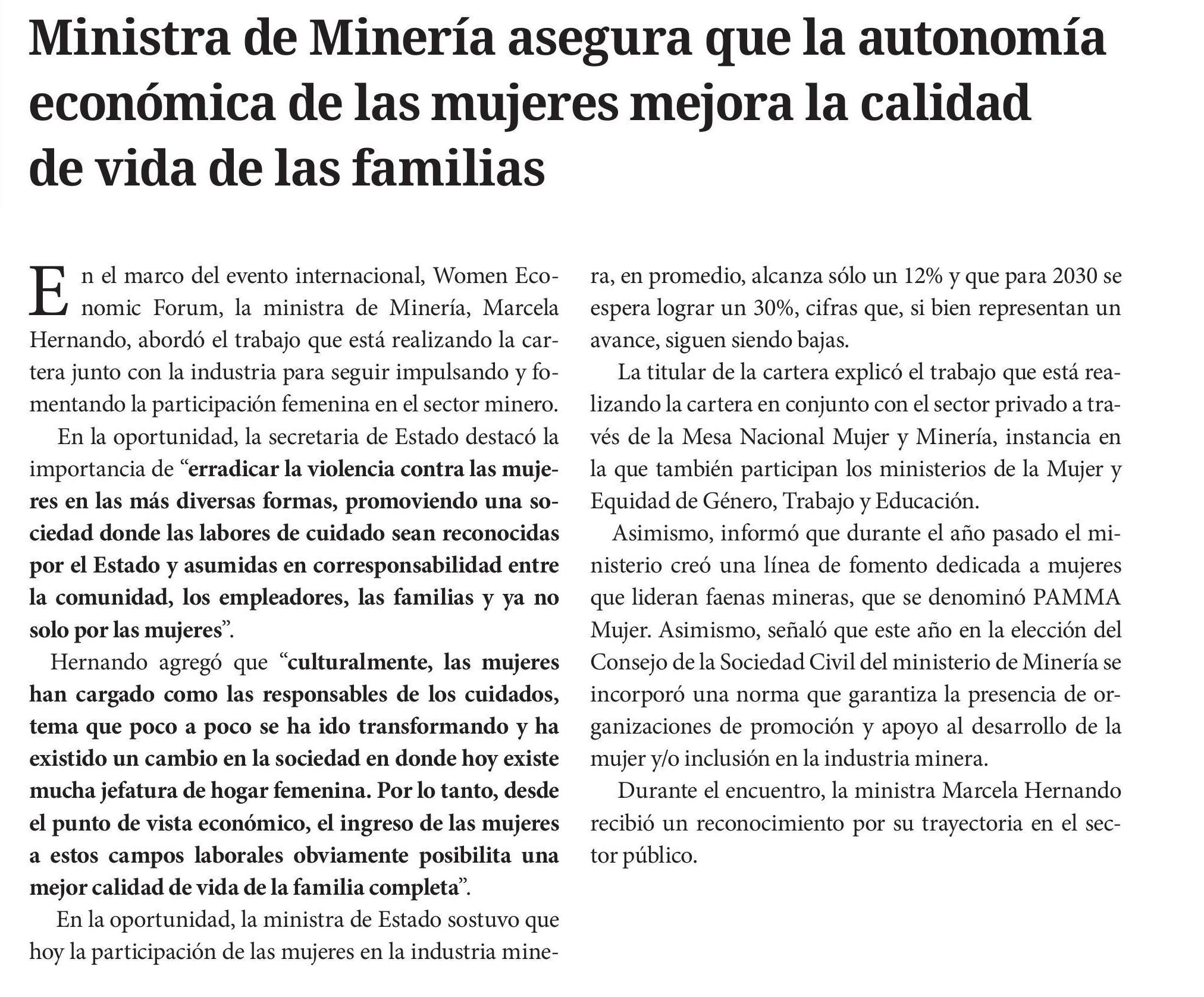Ministra de Minería asegura que la autonomía económica de las mujeres mejora la calidad de vida de las familias 26-03-2023 Diario Chañarcillo |