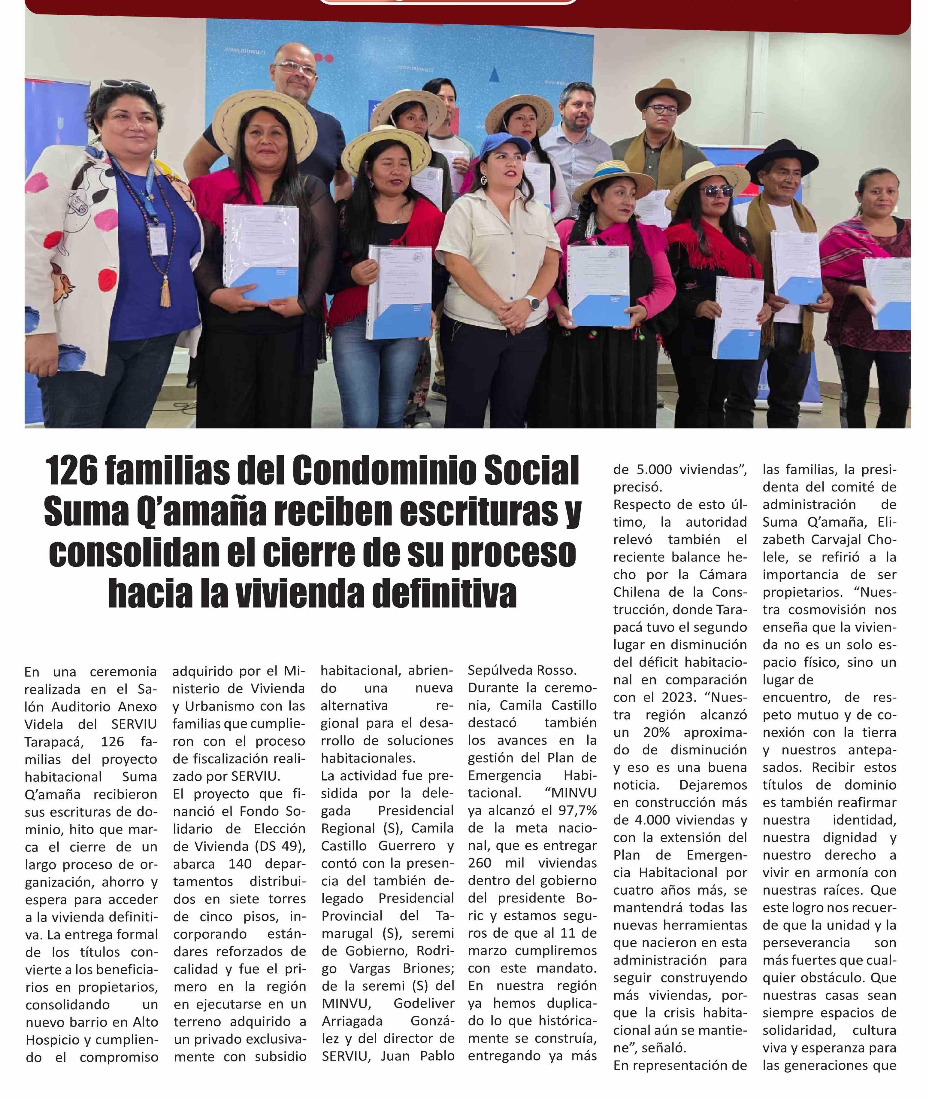 126 familias del Condominio Social Suma 0'amaña reciben escrituras y consolidan el cierre de su proceso hacia la vivienda definitiva 16-02-2026 El Longino |