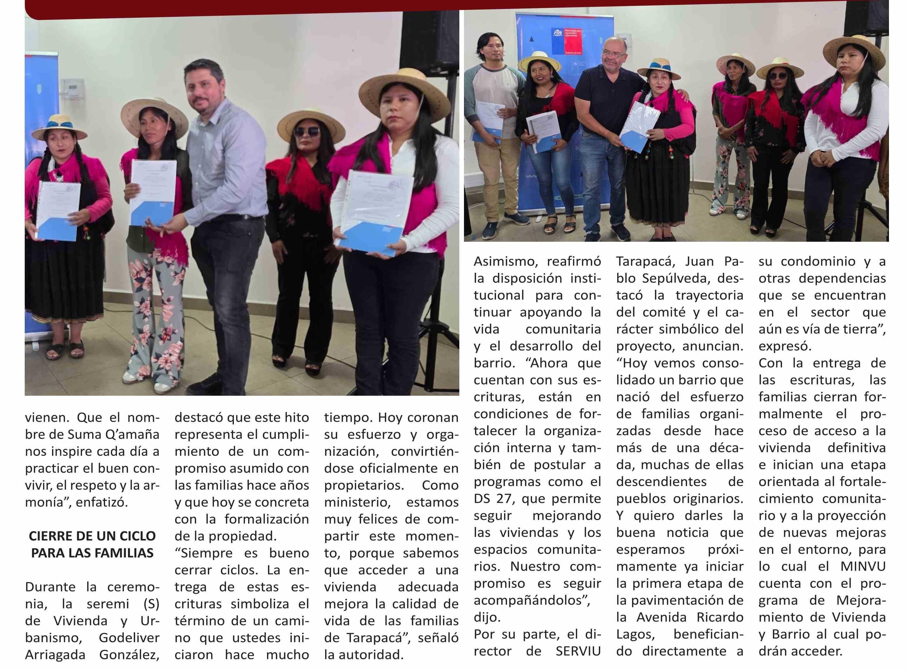 | Título: | 126 familias del Condominio Social Suma 0'amaña reciben escrituras y consolidan el cierre de su proceso hacia la vivienda definitiva |
