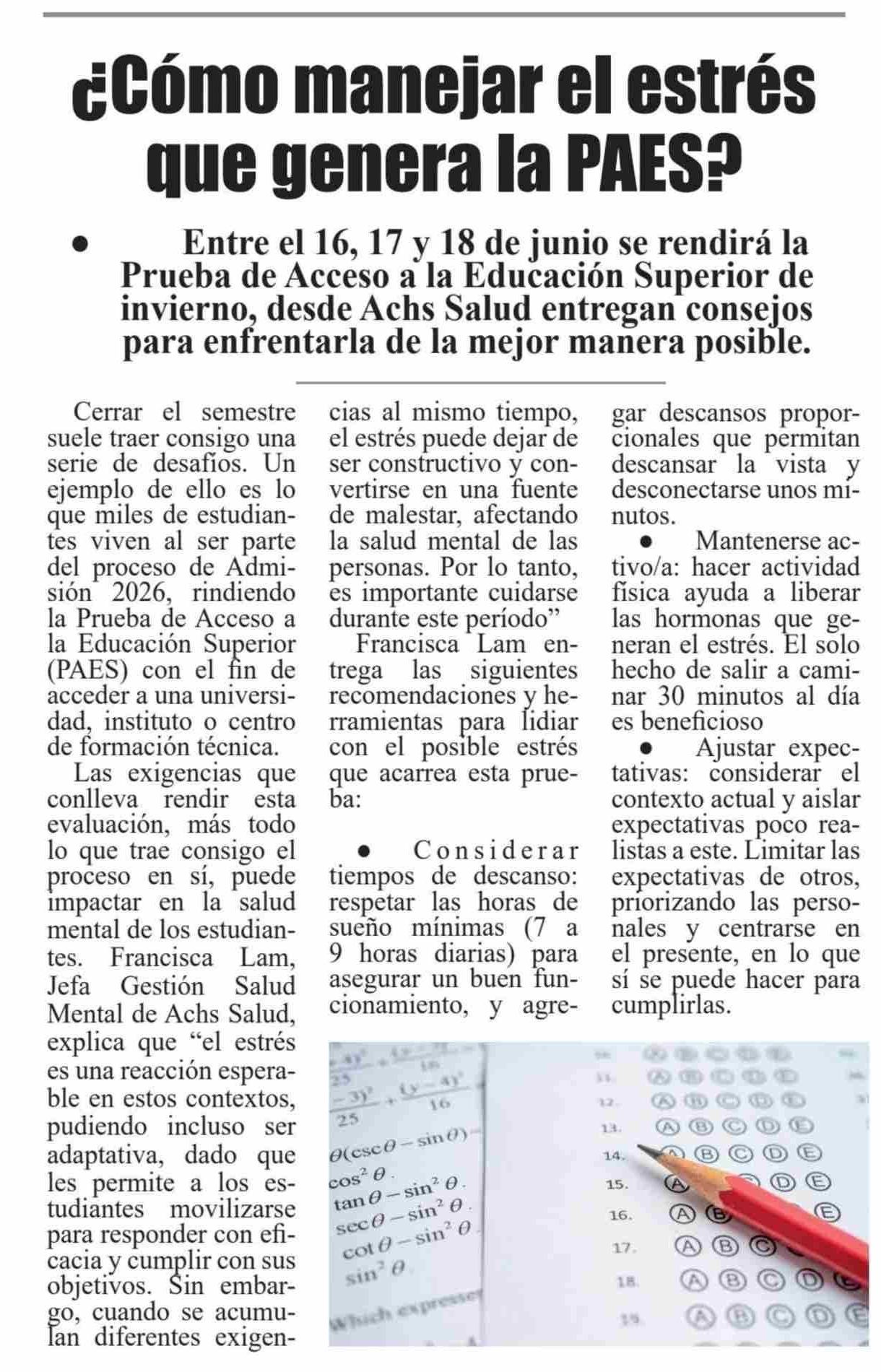 ¿Cómo manejar el estrés ove genera la PAES ? 15-06-2025 El Heraldo |