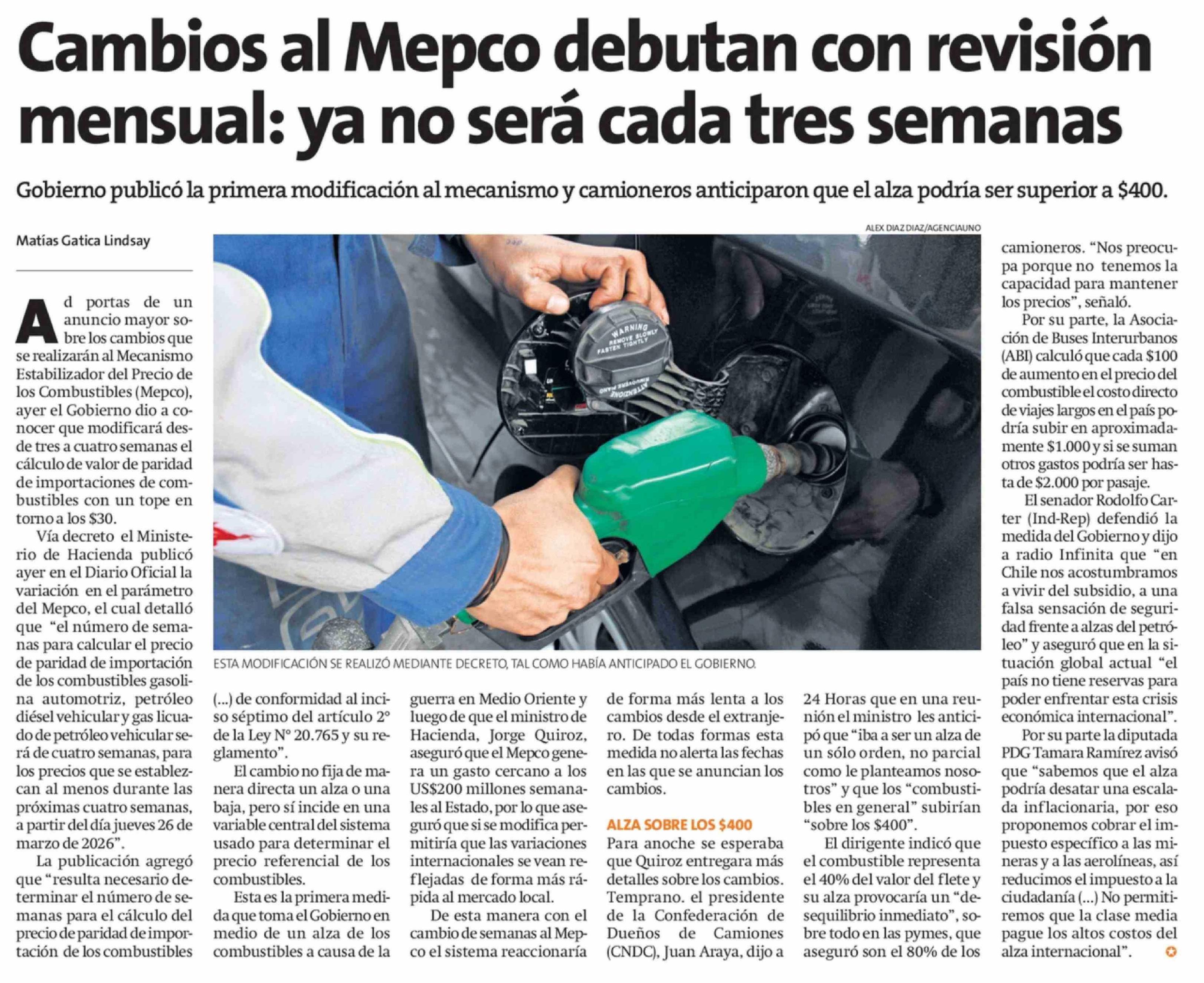 Cambios al Mepco debutan con revisión mensual: ya no será cada tres semanas 24-03-2026 La Estrella de Iquique |