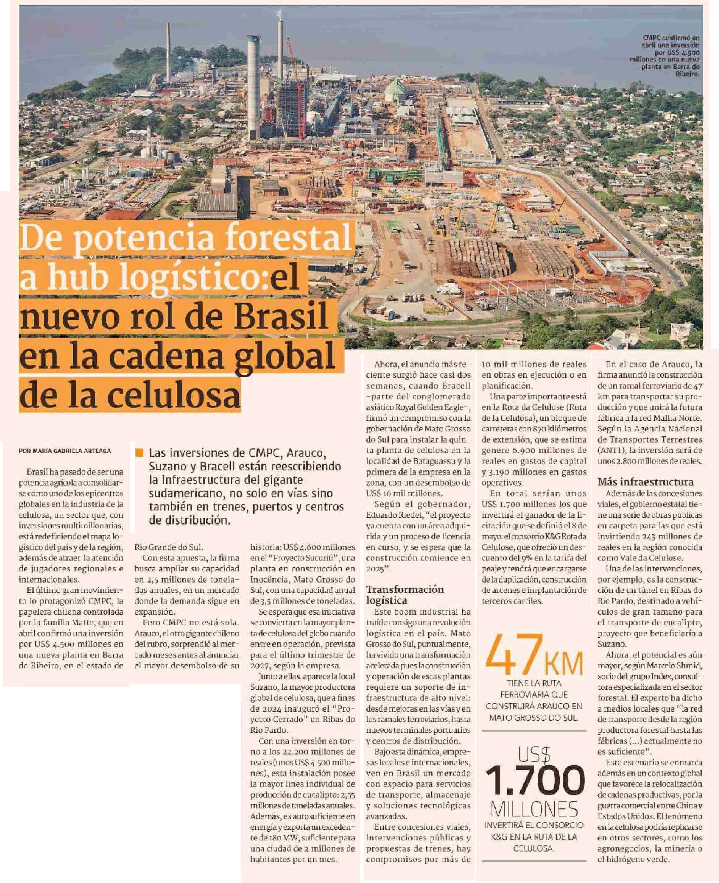 De potencia forestal a hub logístico: EL nuevo rol de Brasil en la cadena global de la celulosa 19-05-2025 Diario Financiero |