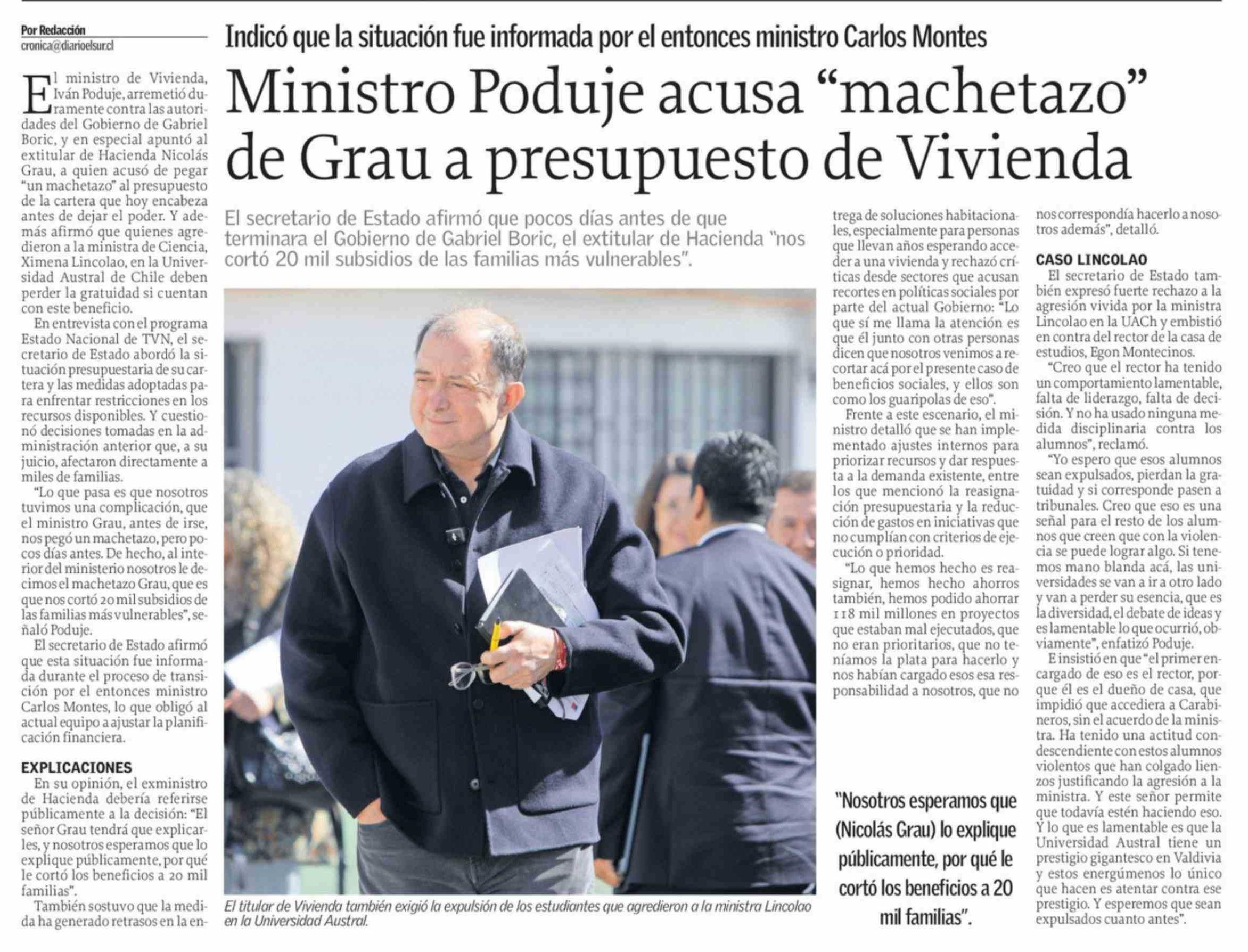 | Título: | Ministro Poduje acusa "machetazo" de Grau a presupuesto de Vivienda |