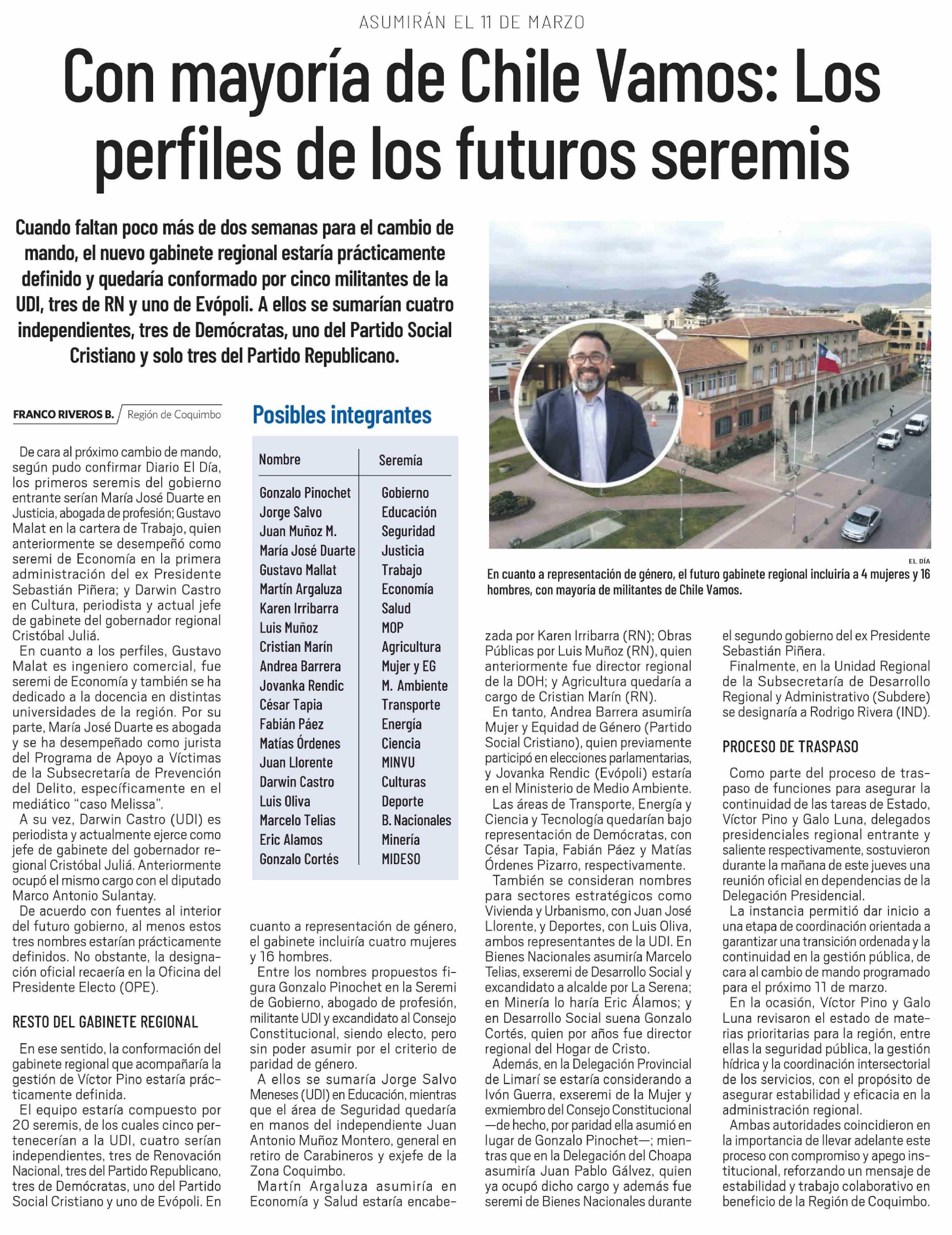 Título: Con mayoría de Chile Vamos: Los perfiles de los futuros seremis