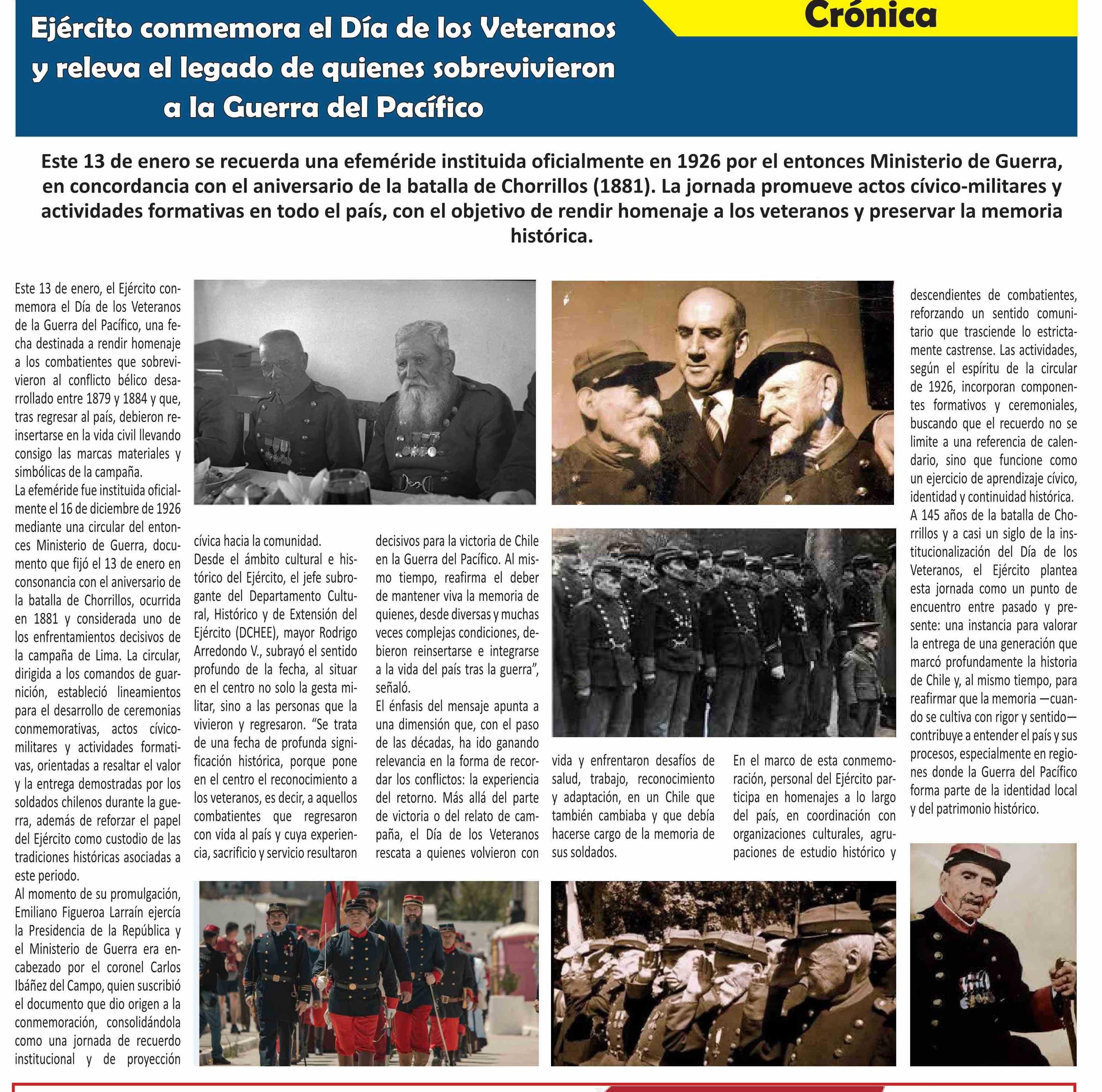 Título: Ejército conmemora el Día de los Veteranos y releva el legado de quienes sobrevivieron a la Guerra del Pacífico