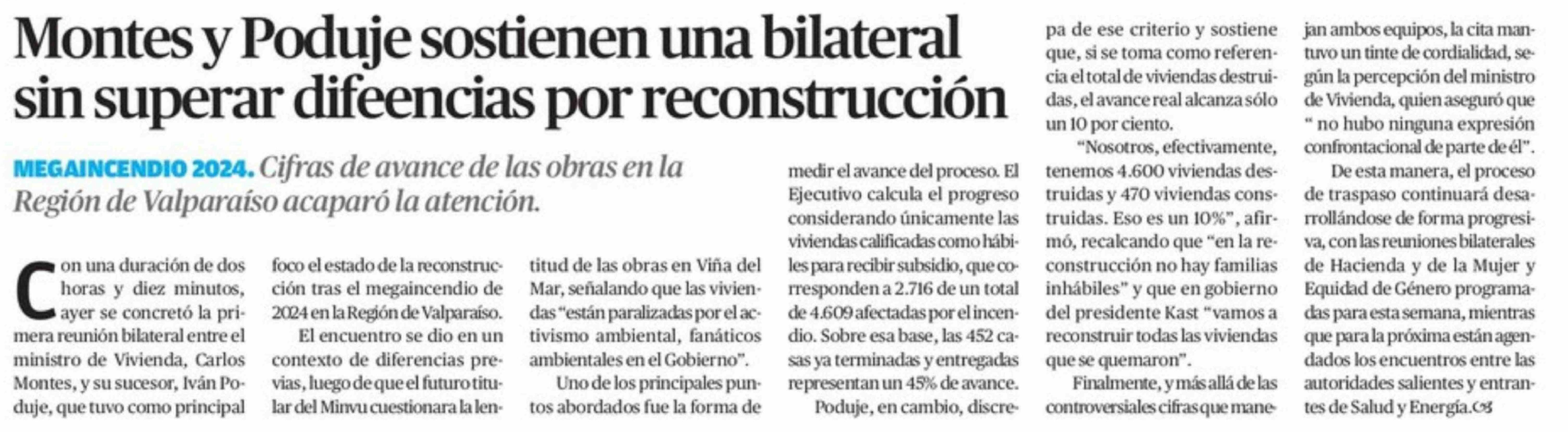 Montes y Poduje sostienen una bilateral sin superar difeencias por reconstrucción 04-02-2026 El Mercurio de Antofagasta |