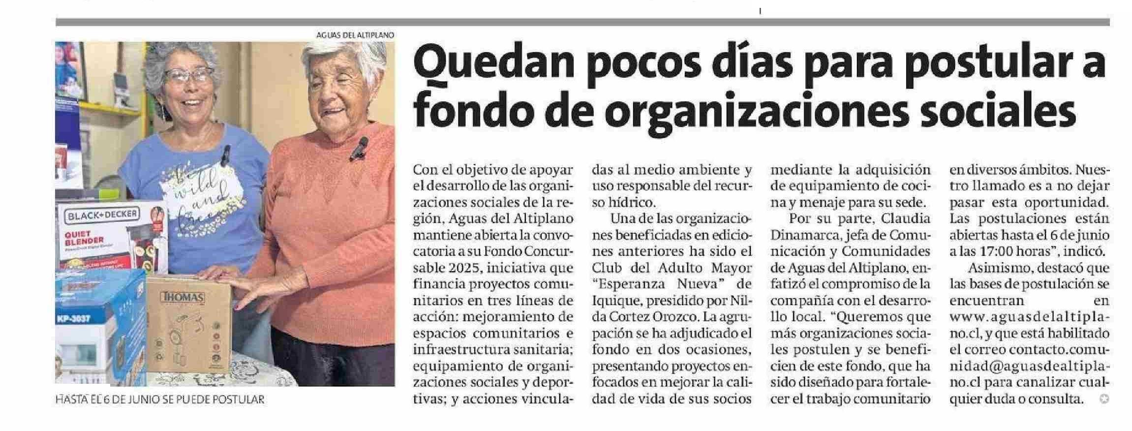 Quedan pocos días para postular a fondo de organizaciones sociales 23-05-2025 La Estrella de Iquique |