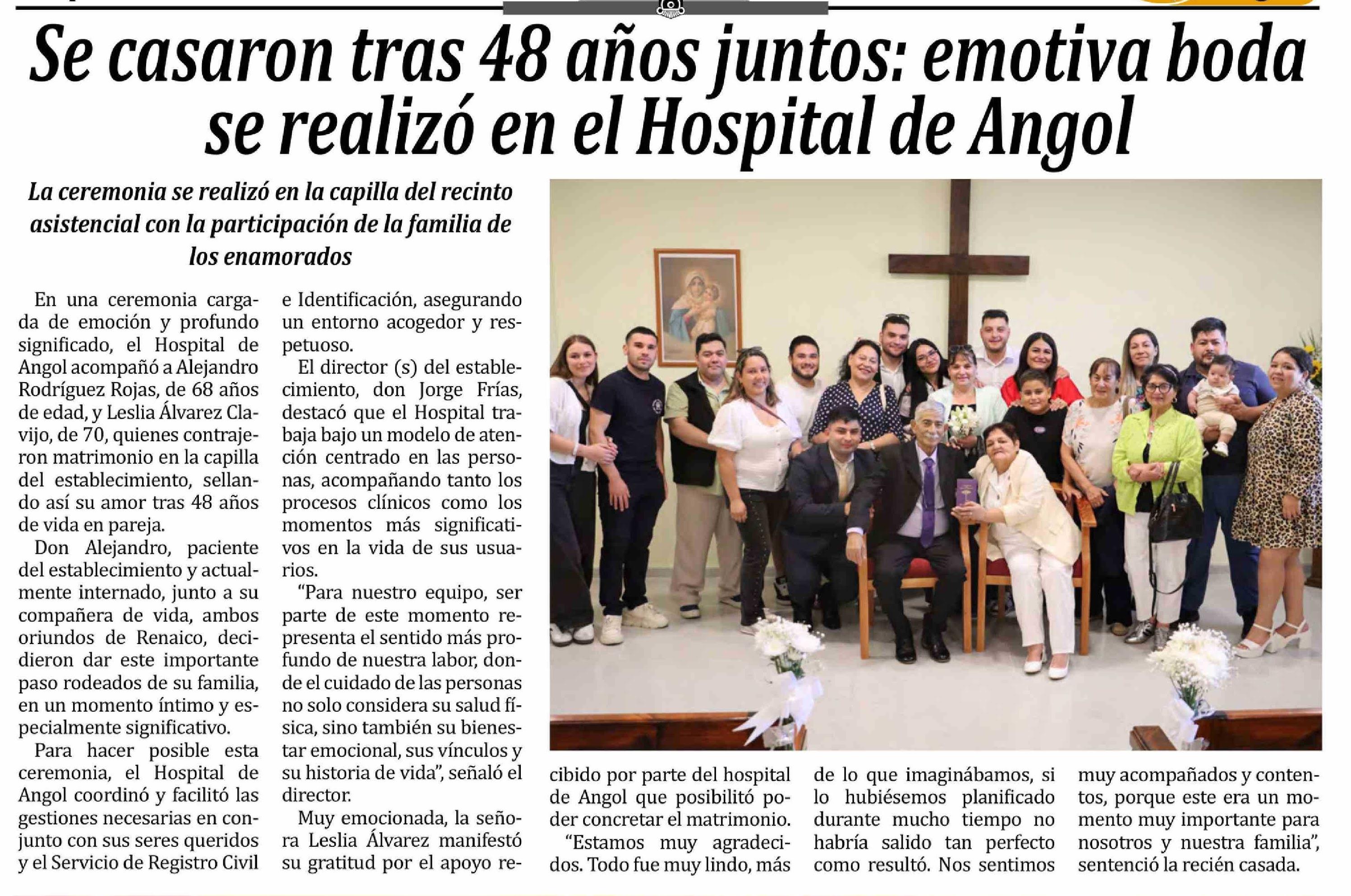 Se casaron tras 48 años juntos: emotiva boda se realizó en el Hospital de Angol 21-02-2026 Las Noticias |