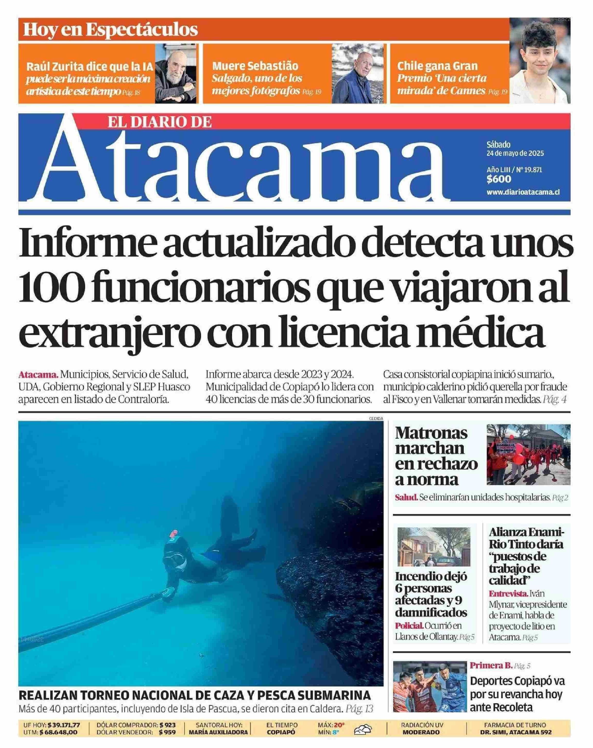 PORTADA EL DIARIO DE ATACAMA - CHILE 24-05-2025 El Diario de Atacama |