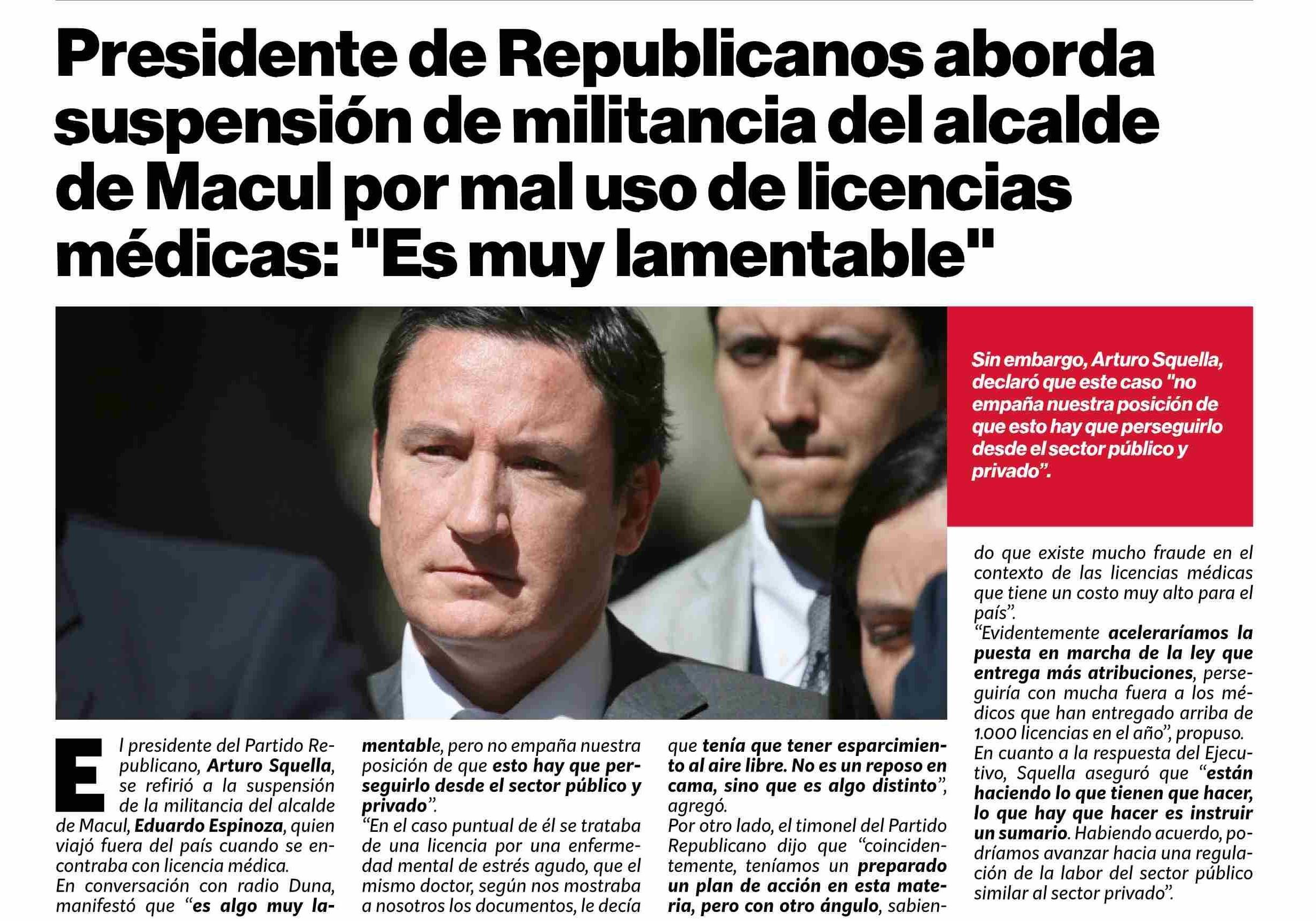 Título: Presidente de Republicanos aborda suspensión de militancia del alcalde de Macul por mal uso de licencias médicas: "Es muy lamentable"