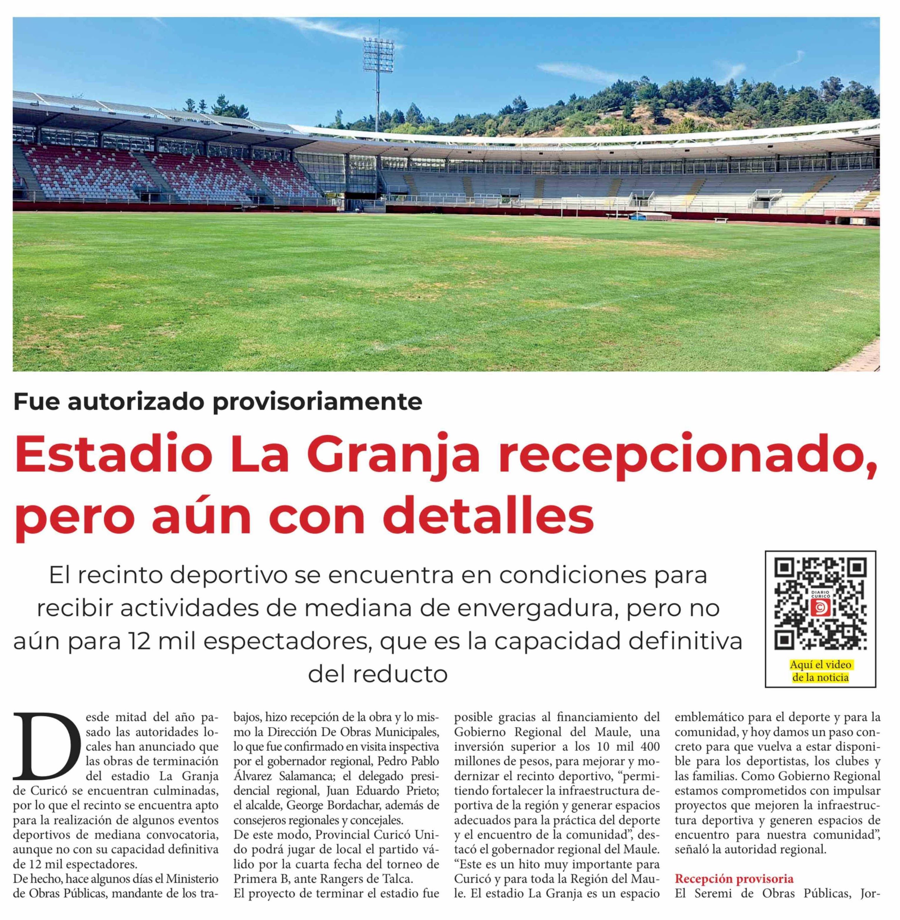 Estadio La Granja recepcionado, pero aún con detalles 15-03-2026 Diario Talca |