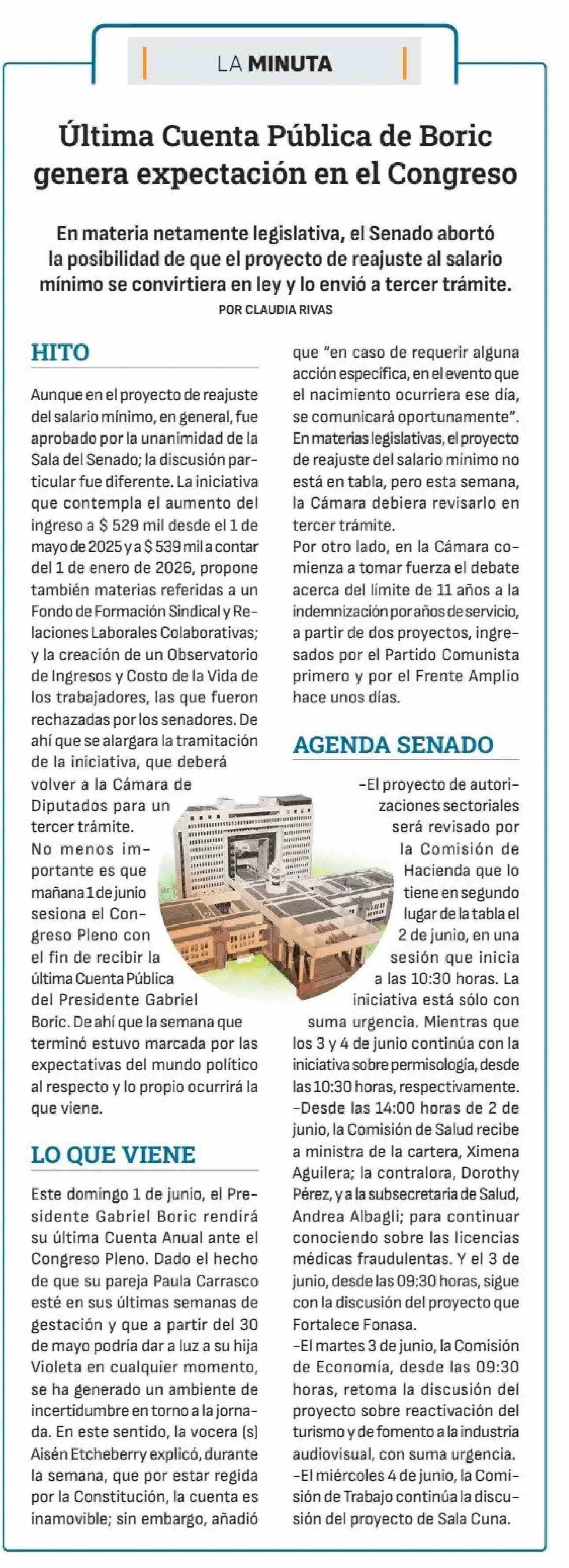 Última Cuenta Pública de Boric genera expectación en el Congreso 31-05-2025 Diario Financiero |