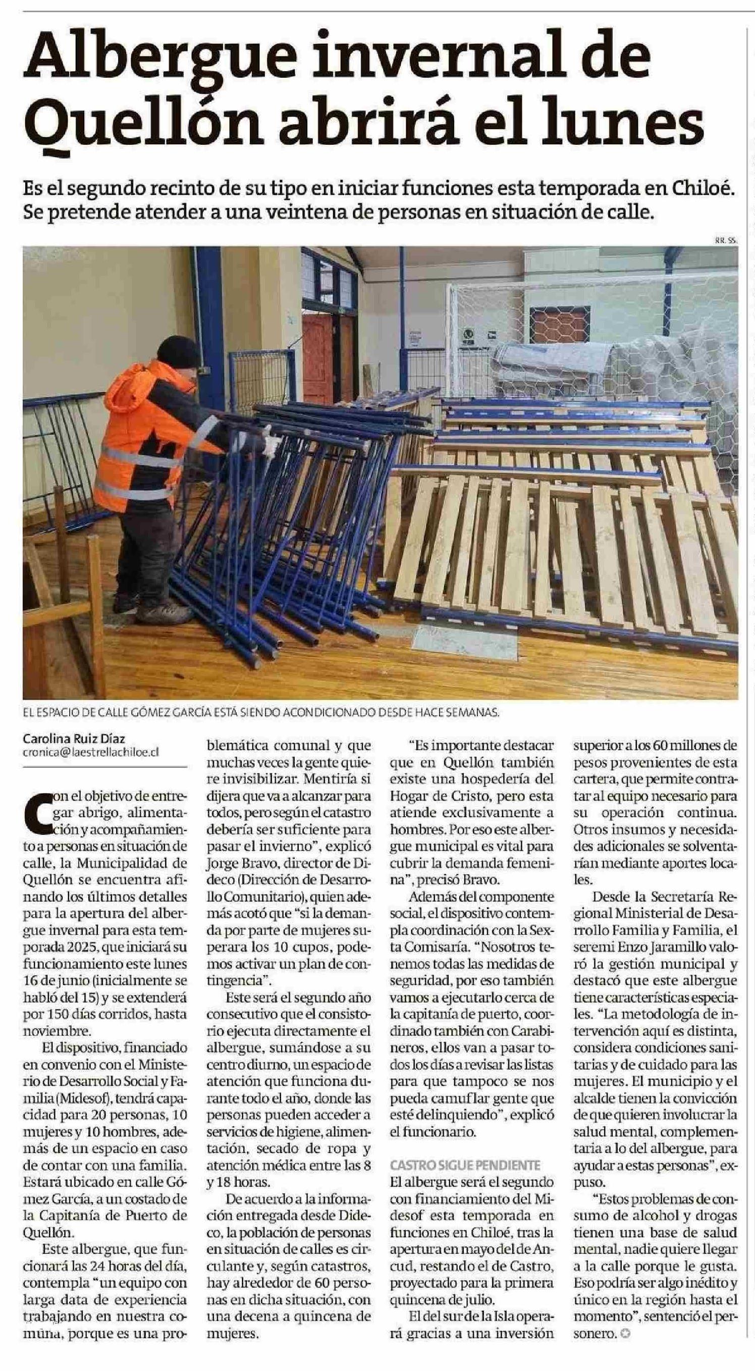Albergue invernal de Quellón abrirá el lunes 13-06-2025 La Estrella de Chiloé |