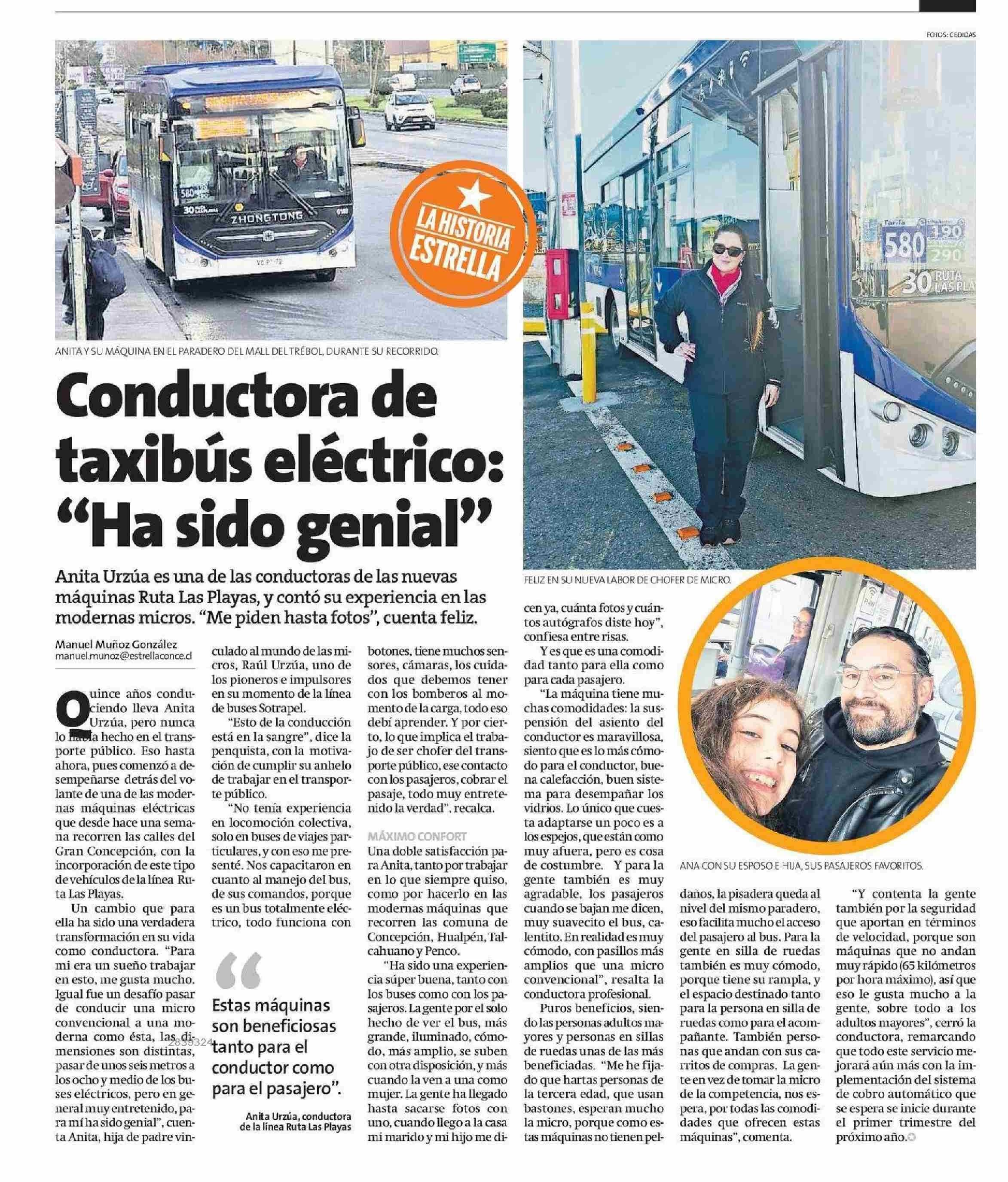 Conductora de taxibús eléctrico: “Ha sido genial” 20-06-2025 La Estrella de Concepción |