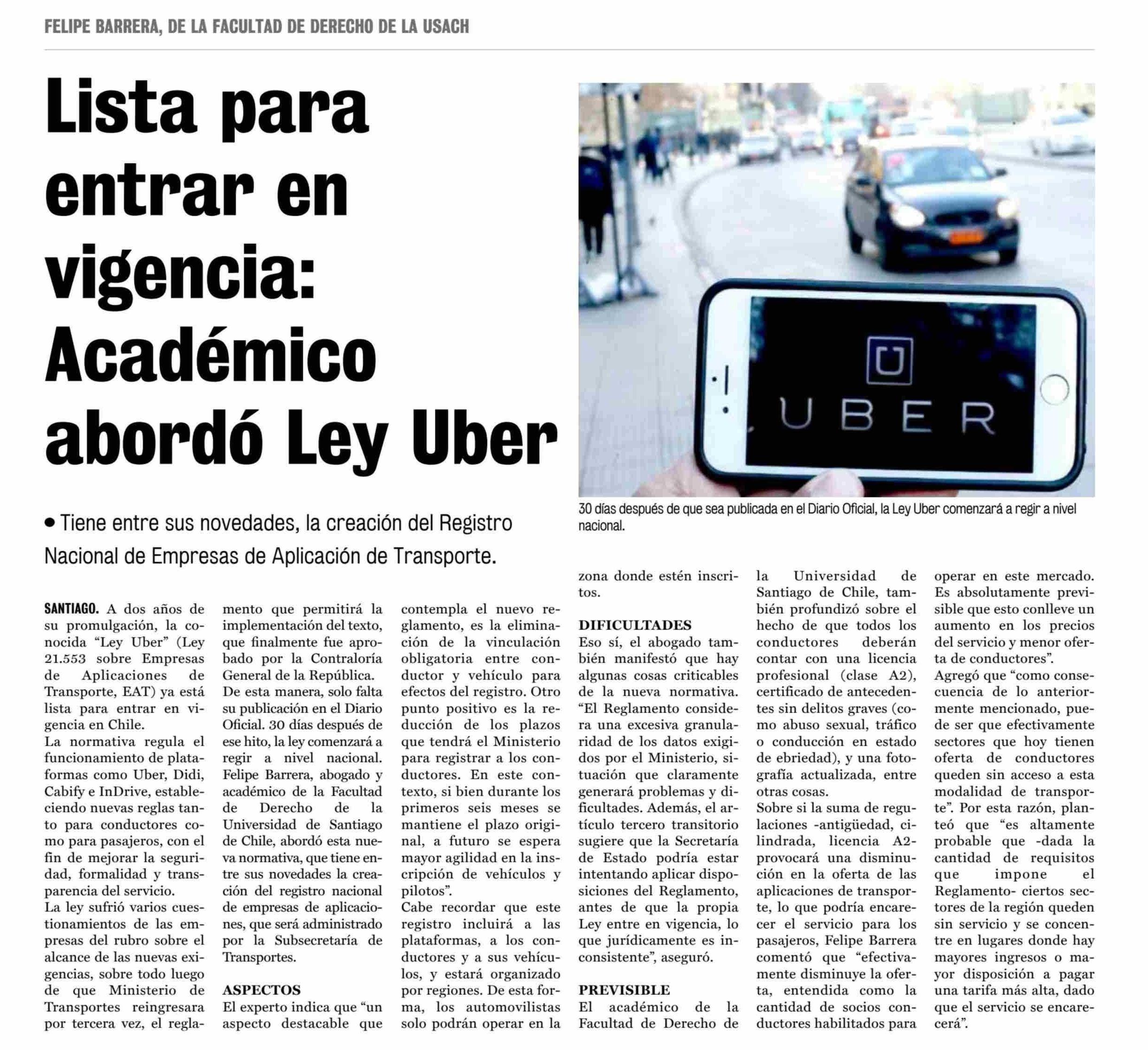 Lista para entrar en vigencia: Académico abordó Ley Uber 21-04-2025 La Prensa de Curicó |