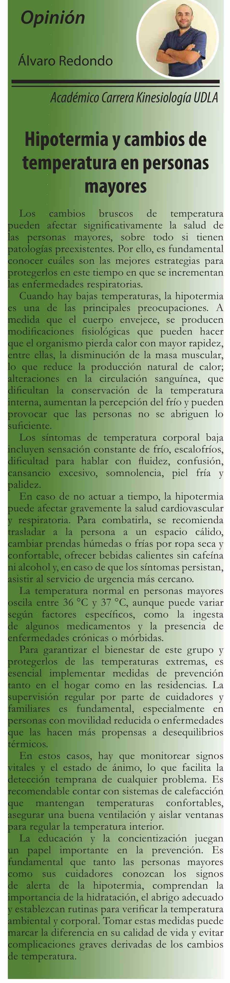 Título: Columnas de Opinión: Hipotermia y cambios de temperatura en personas mayores