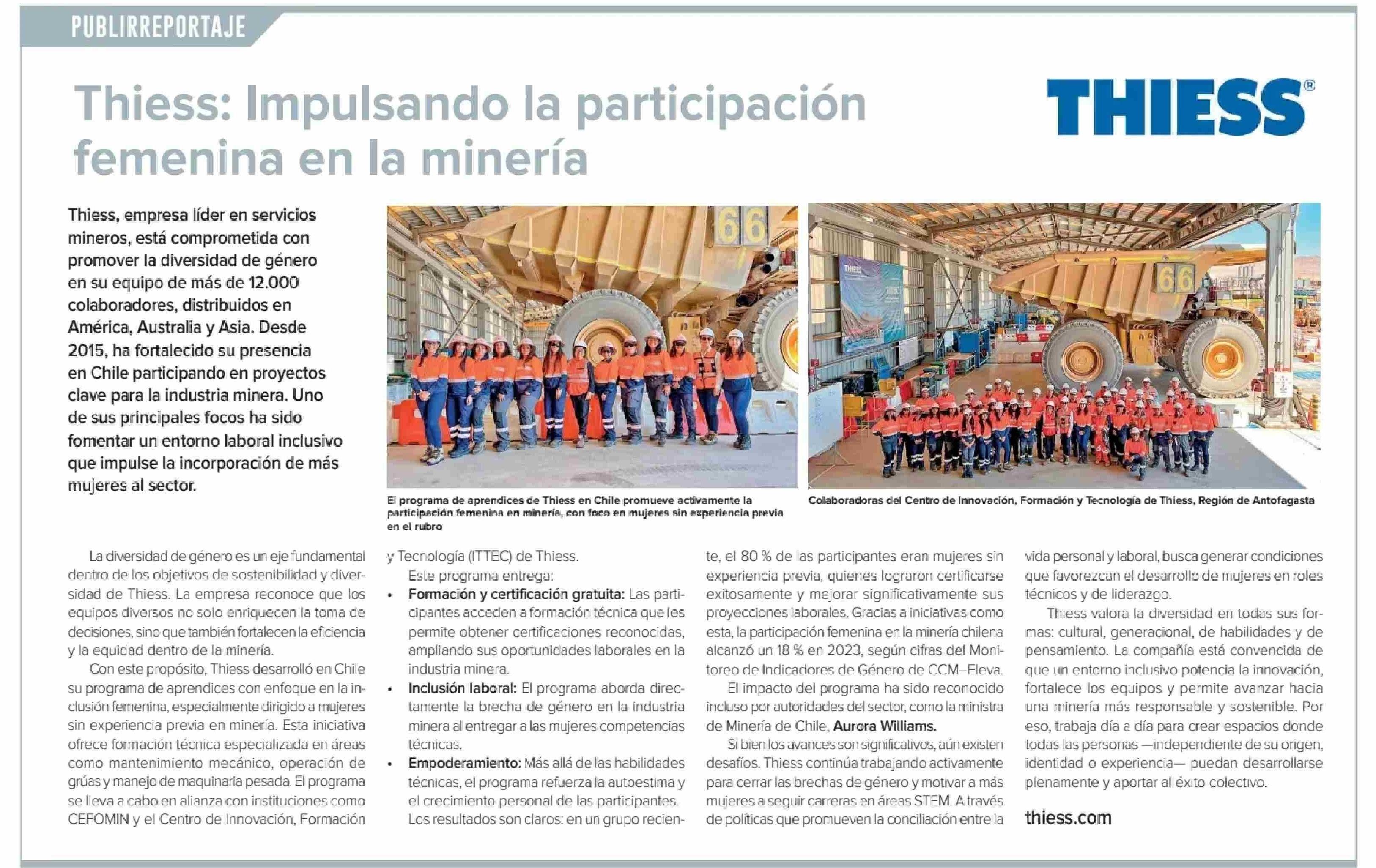Thiess: Impulsando la participación femenina en la minería 15-06-2025 Diario Financiero |
