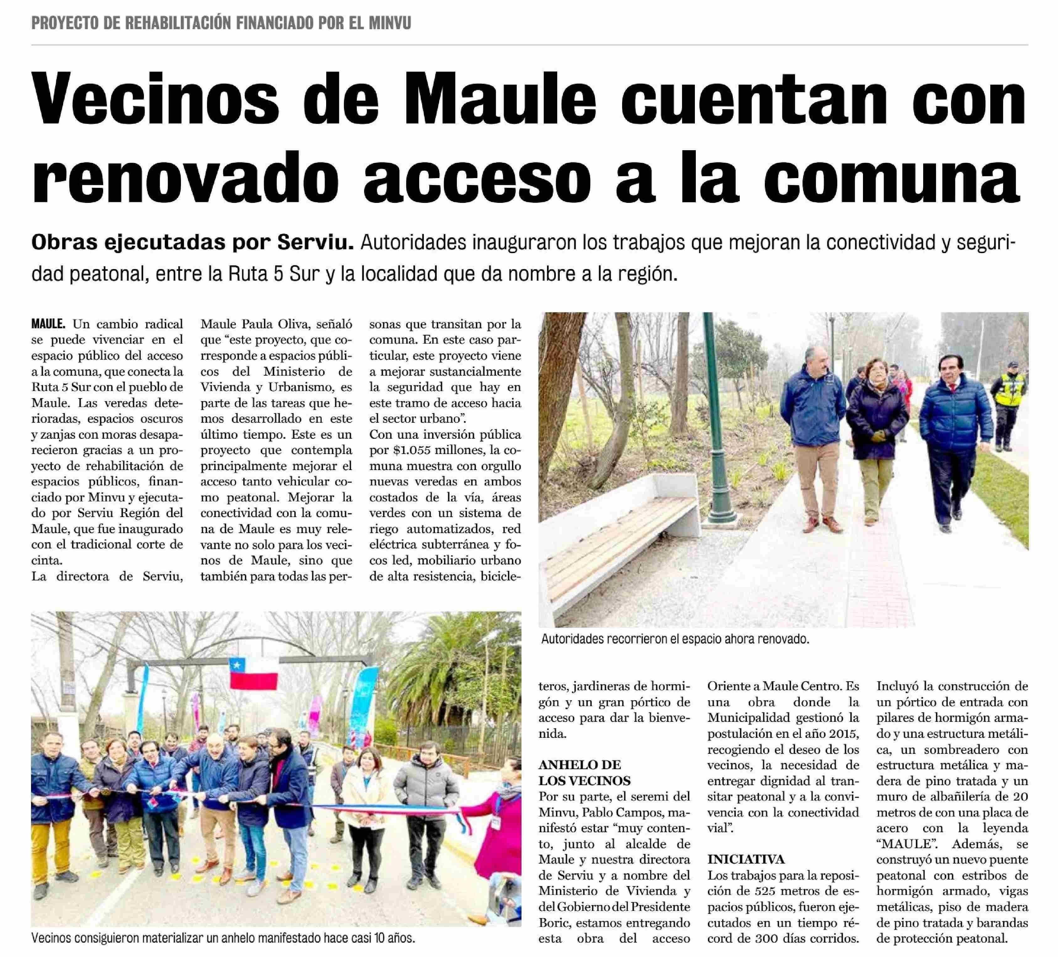 Vecinos de Maule cuentan con renovado acceso a la comuna 14-07-2024 La Prensa de Curicó |