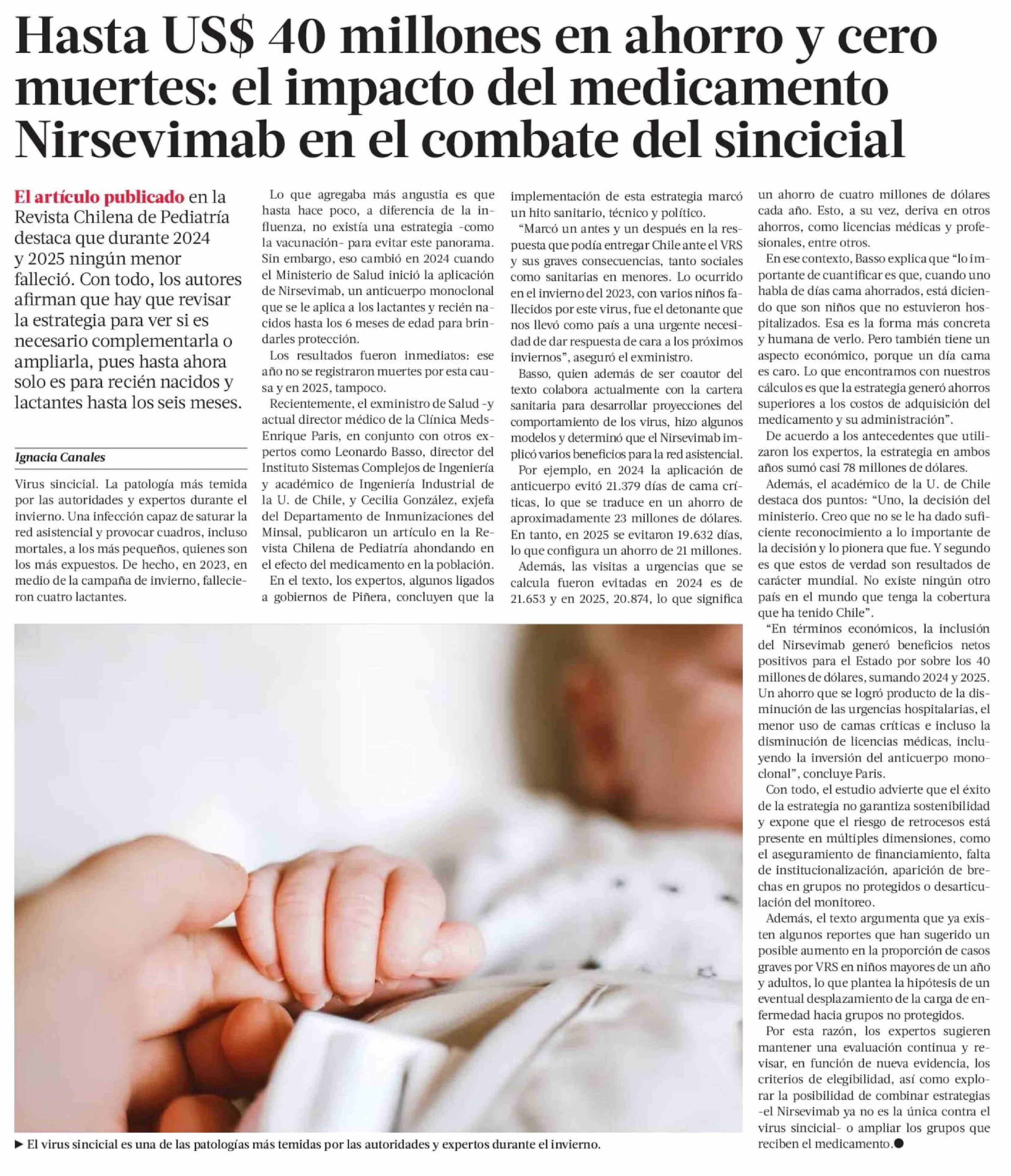 Hasta US$ 40 millones en ahorro y cero muertes: el impacto del medicamento Nirsevimab en el combate del sincicial 05-03-2026 La Tercera |
