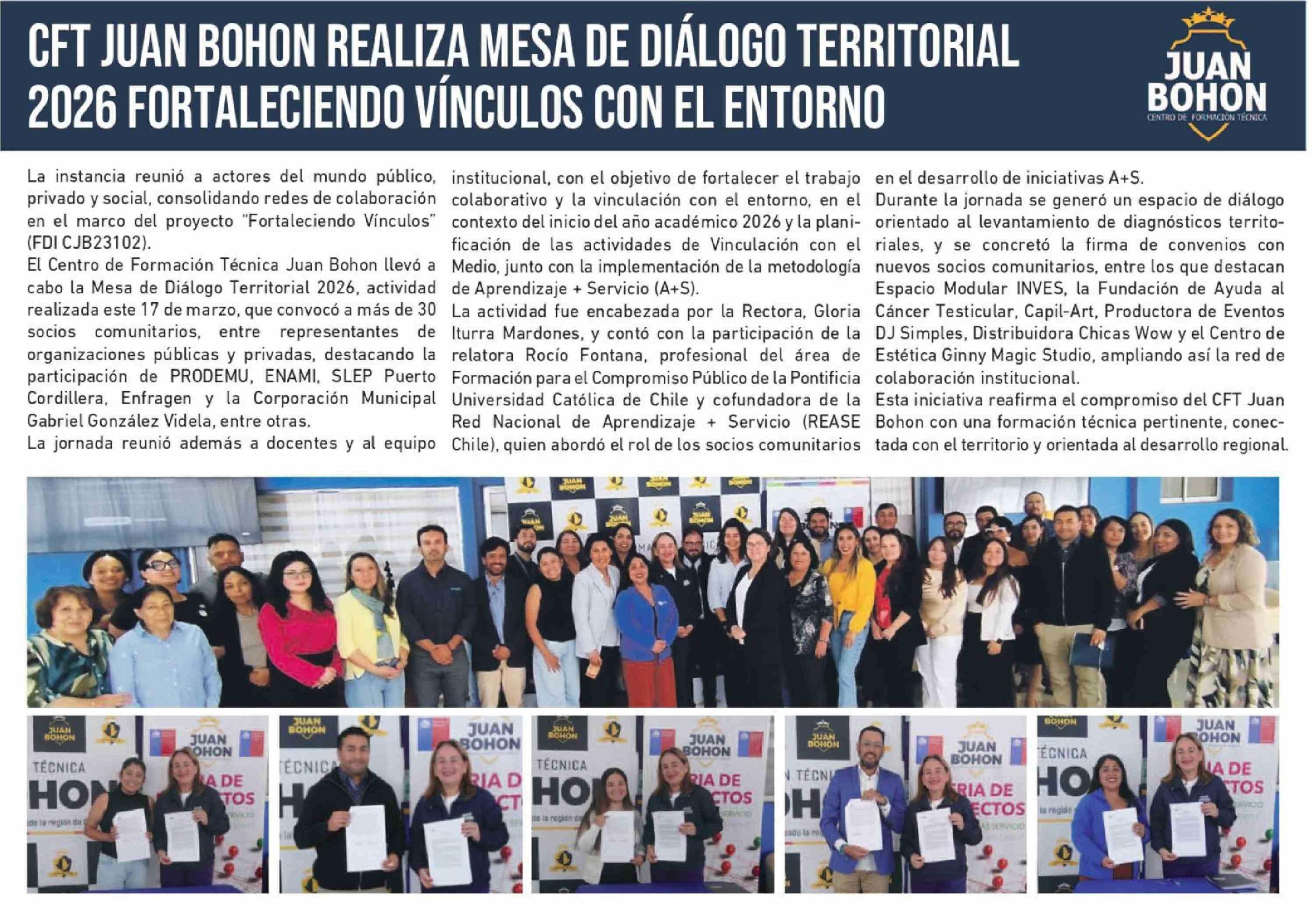 Título: CFT JUAN BOHON REALIZA MESA DE DIÁLOGO TERRITORIAL 2026 FORTALECIENDO VÍNCULOS CON EL ENTORNO