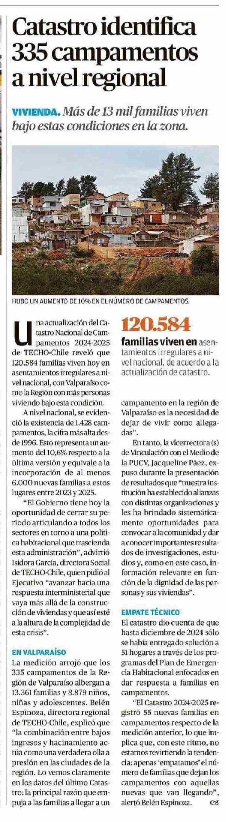 Catastro identifica 335 campamentos anivel regional 06-06-2025 El Mercurio de Valparaíso |