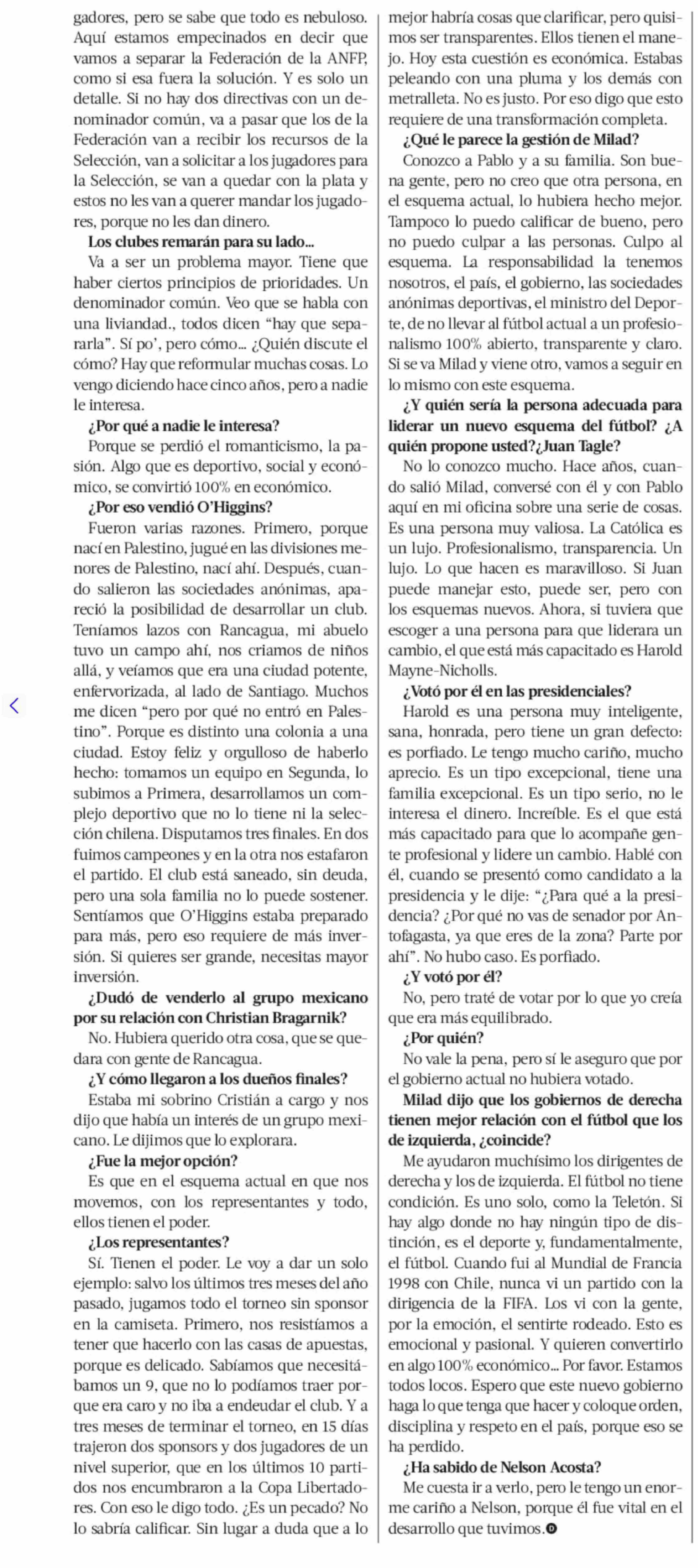 "En los 60 hicimos un Mundial tras el terremoto más grande de la historia; hoy no podemos programar un partido" 01-02-2026 La Tercera |
