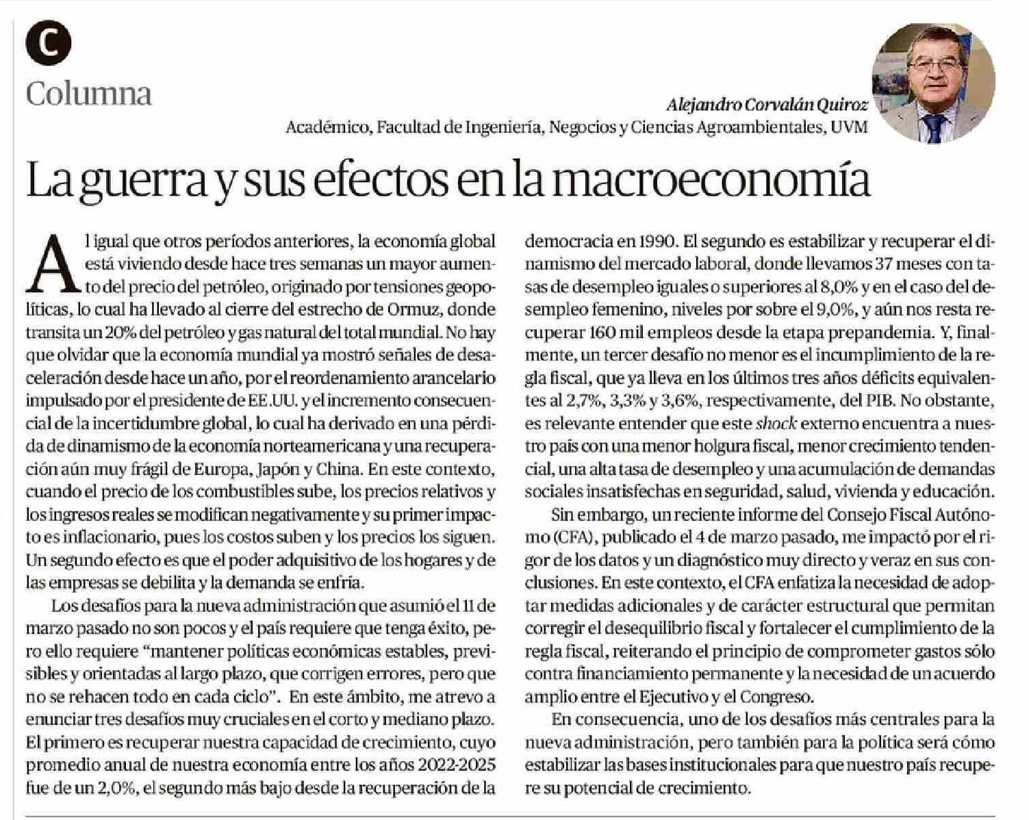 Título: COLUMNAS DE OPINIÓN: La guerra y sus efectos en la macroeconomía