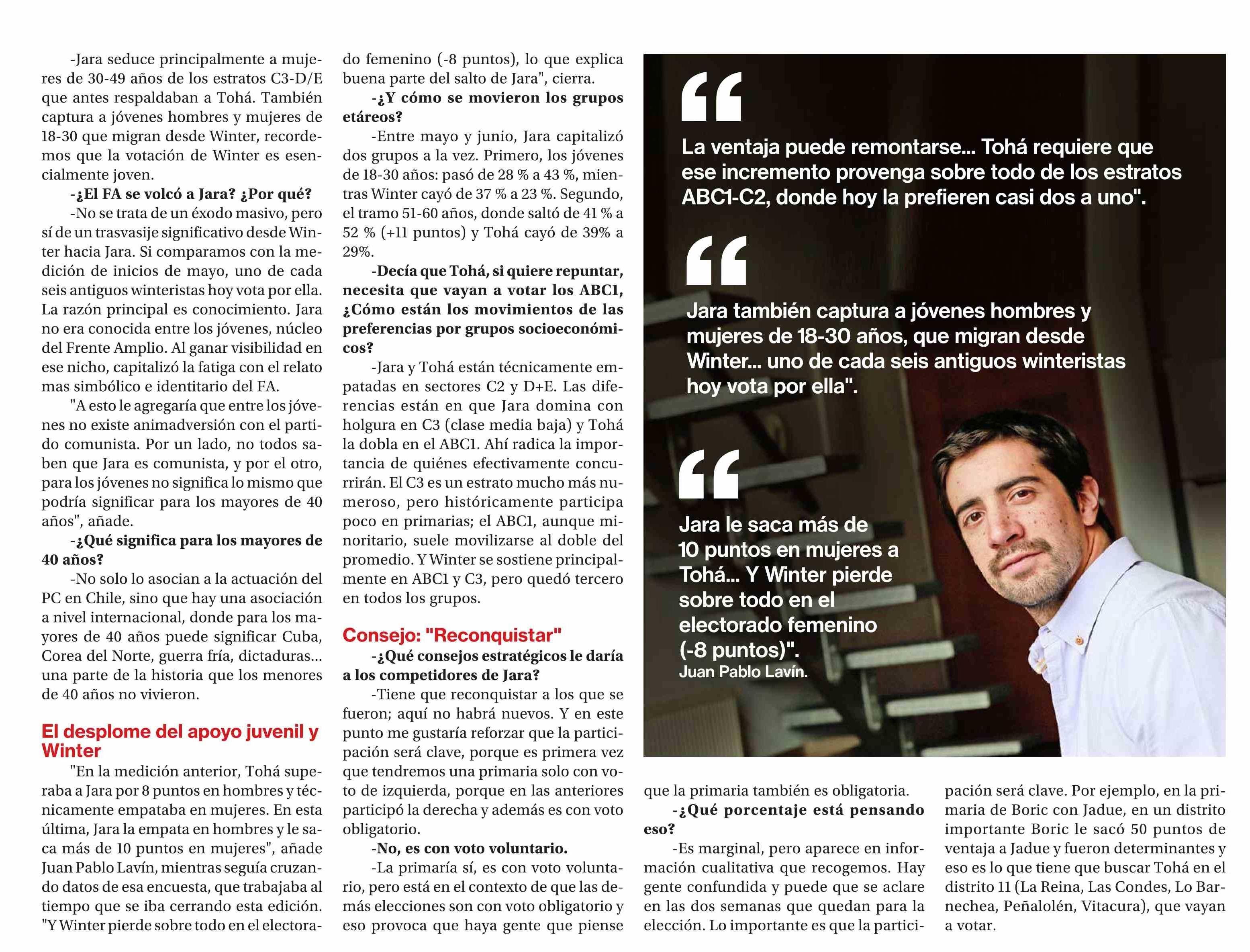 Jara le saca 6 puntos de ventaja a Tohá entre votantes de primaria 13-06-2025 La Segunda |