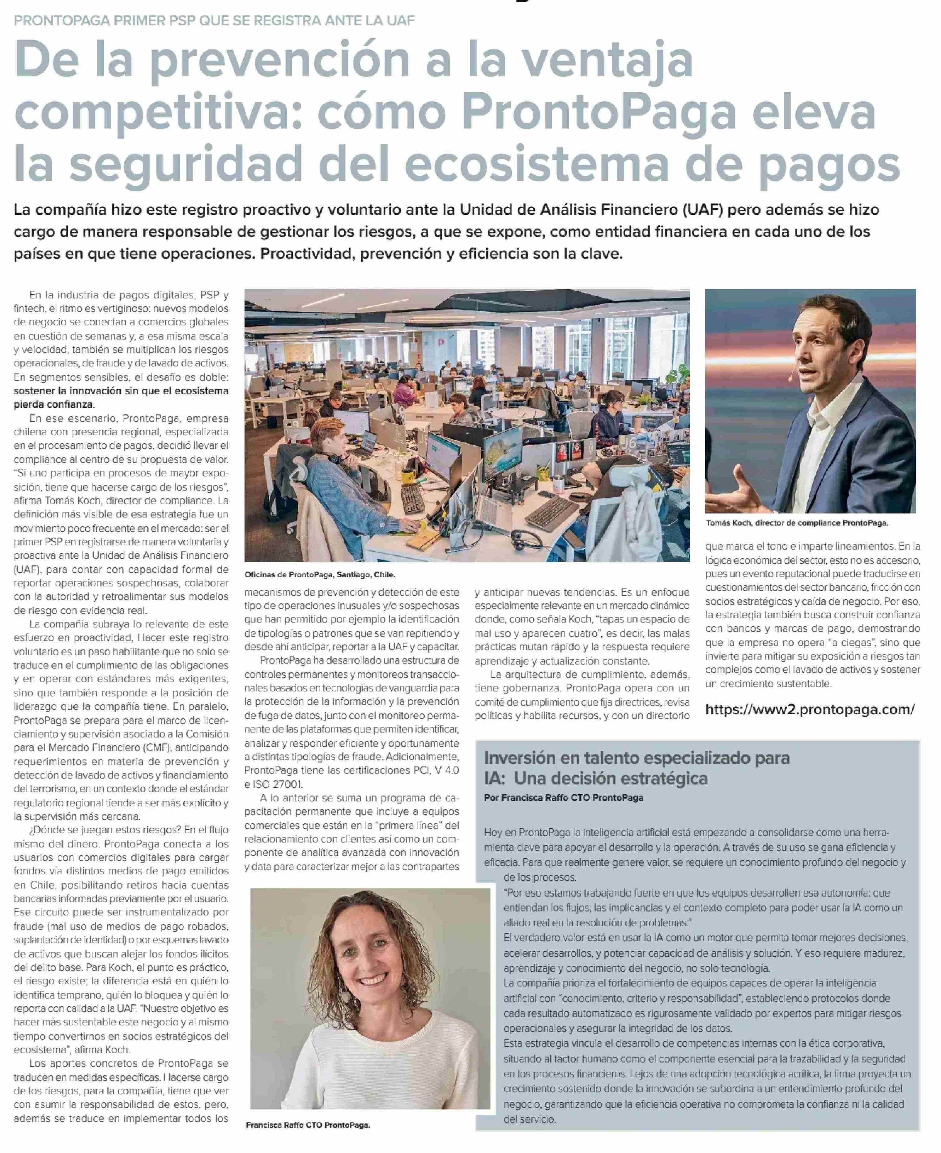De la prevención a la ventaja competitiva: cómo ProntoPaga eleva la seguridad del ecosistema de pagos 25-01-2026 Diario Financiero |