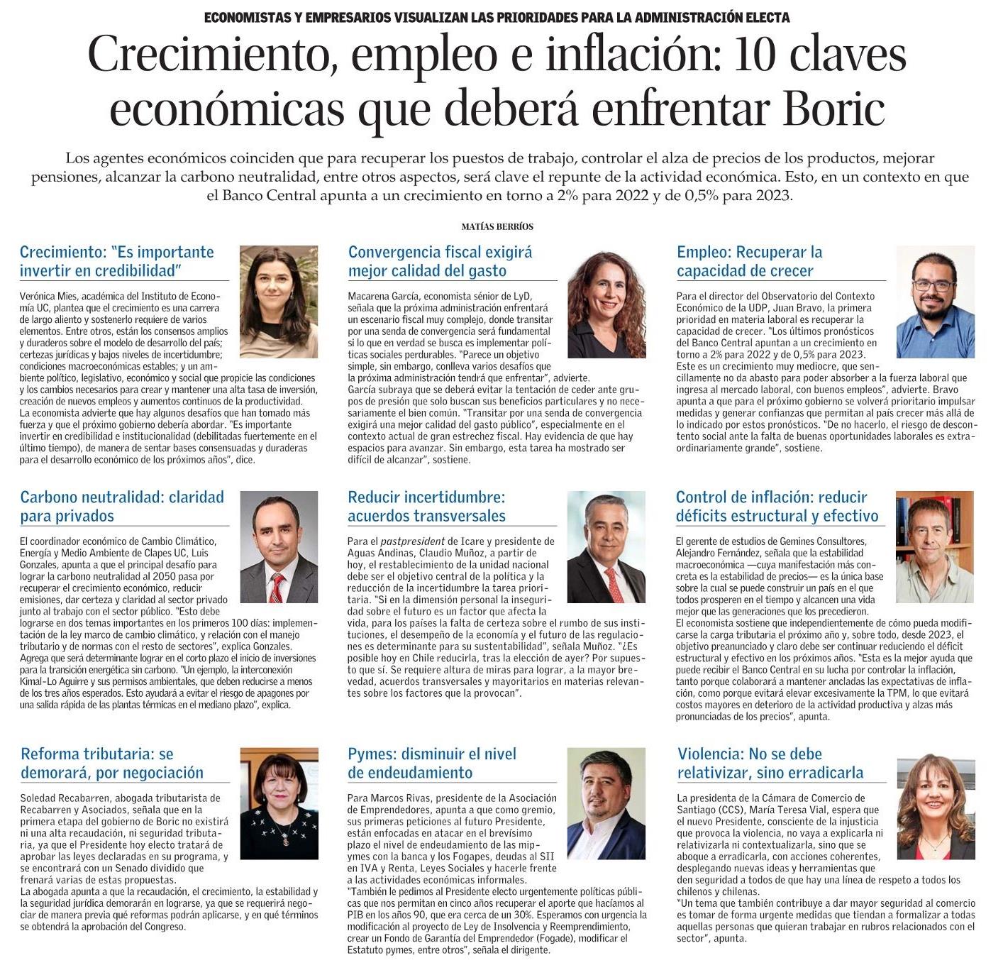 Crecimiento, empleo e inflación: 10 claves económicas que deberá enfrentar Boric 20-12-2021 El Mercurio |