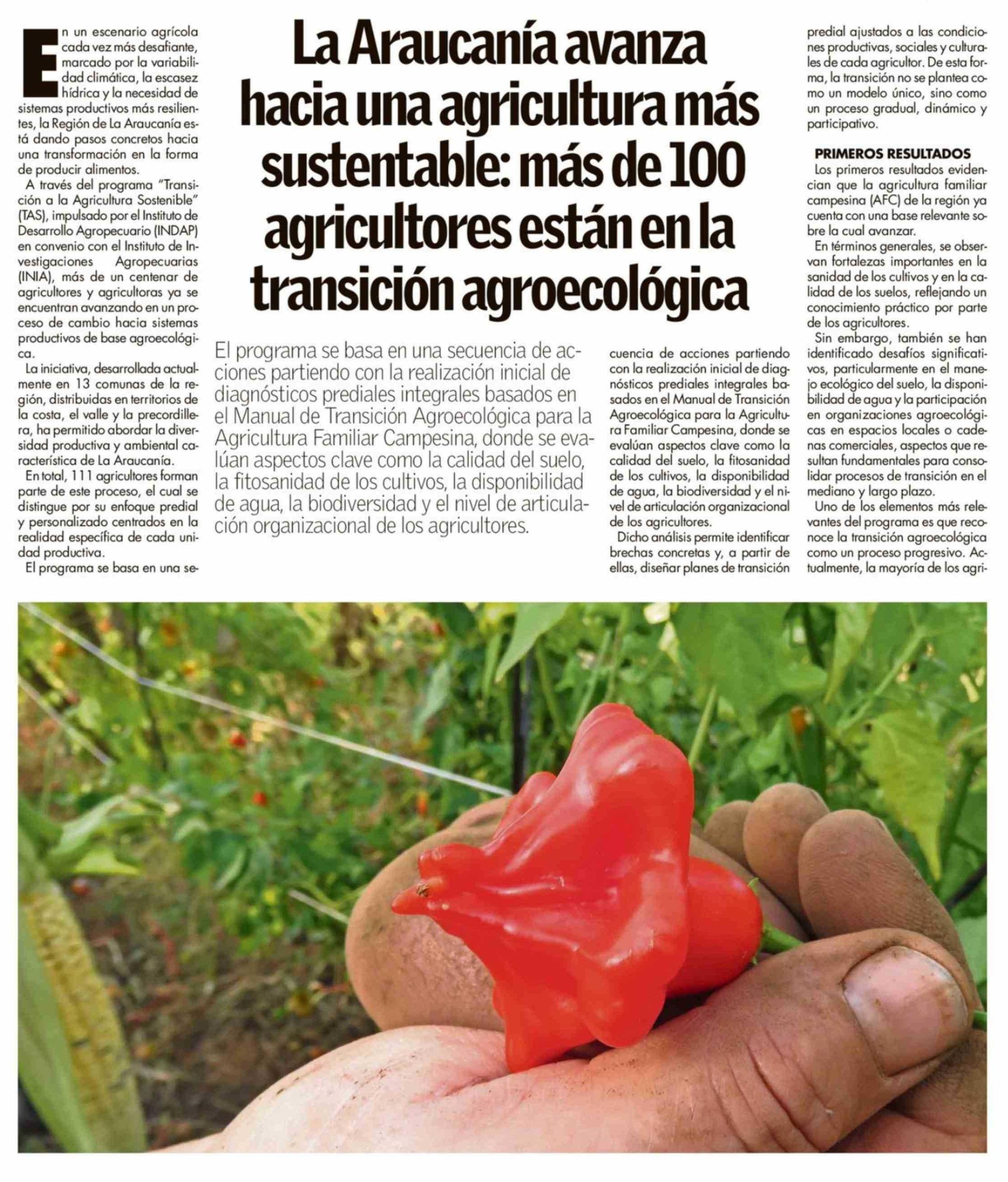 | Título: | La Araucanía avanza hacia una agricultura más sustentable: más de 100 agricultores están en la transición agroecológica |