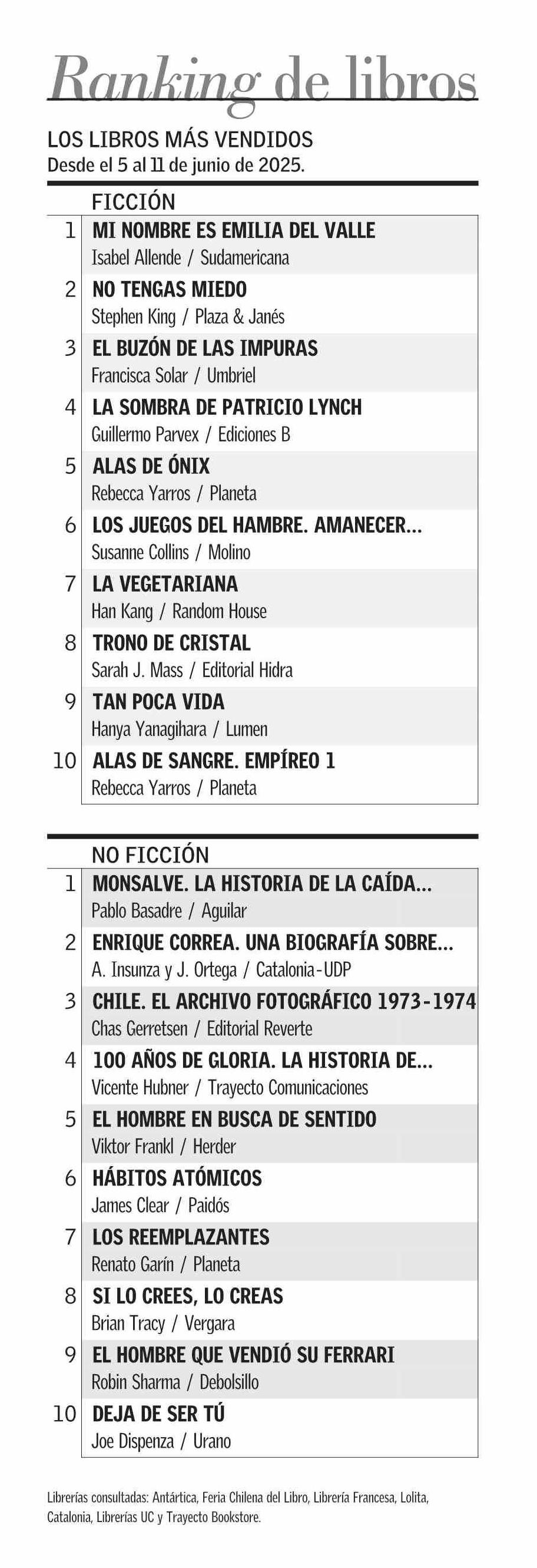 Ranking de libros 15-06-2025 El Mercurio |