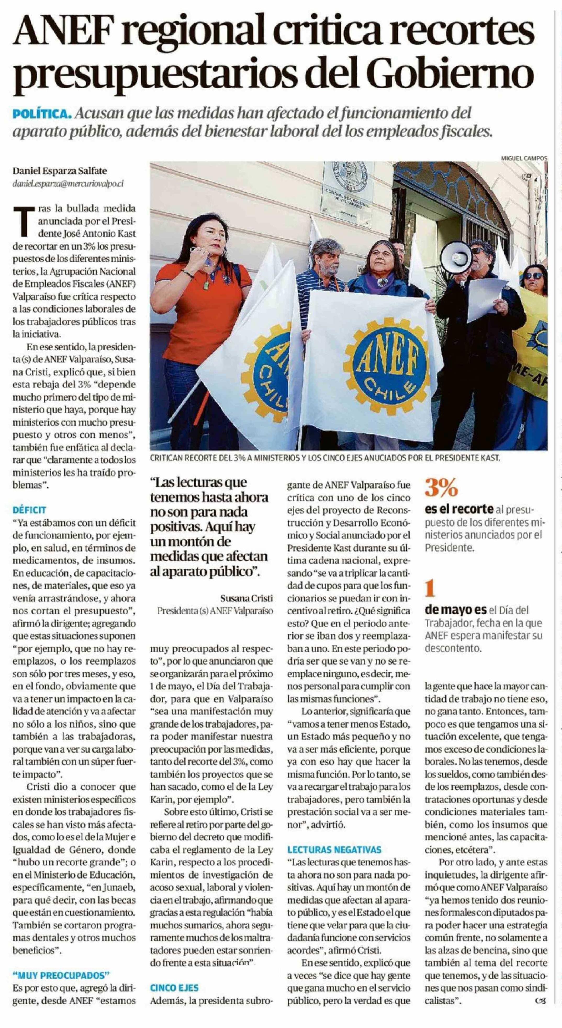 ANEF regional critica recortes presupuestarios del Gobierno 19-04-2026 El Mercurio de Valparaíso |